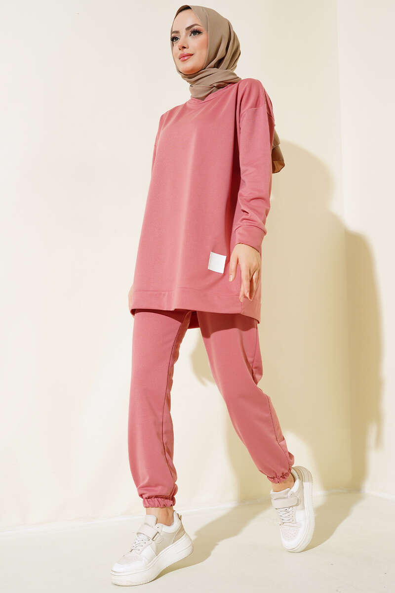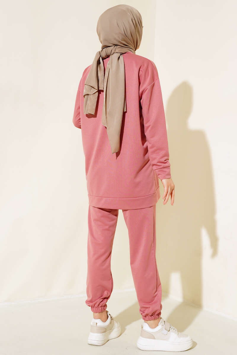 Yeni sezon ikili takımımız sportif tarzıyla sezonun favorileri arasında yerini alacaktır. Tuniğimizin etek ucu armalıdır. Oval yakadır. Omuzları düşük oversize modeldir. Pantolonumuzun beli ve paçası lastiklidir. Cepsiz modeldir. Sportif ikili takımımız dolaplarınızda yerlerini beklemektedir.