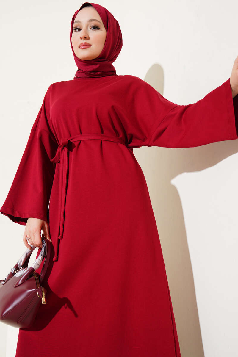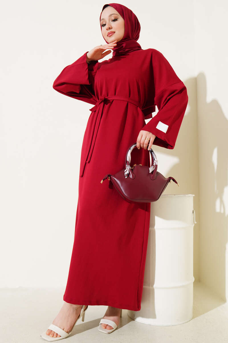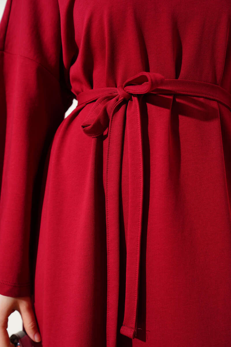Arma Detaylı Kuşaklı Basic Elbise Bordo
