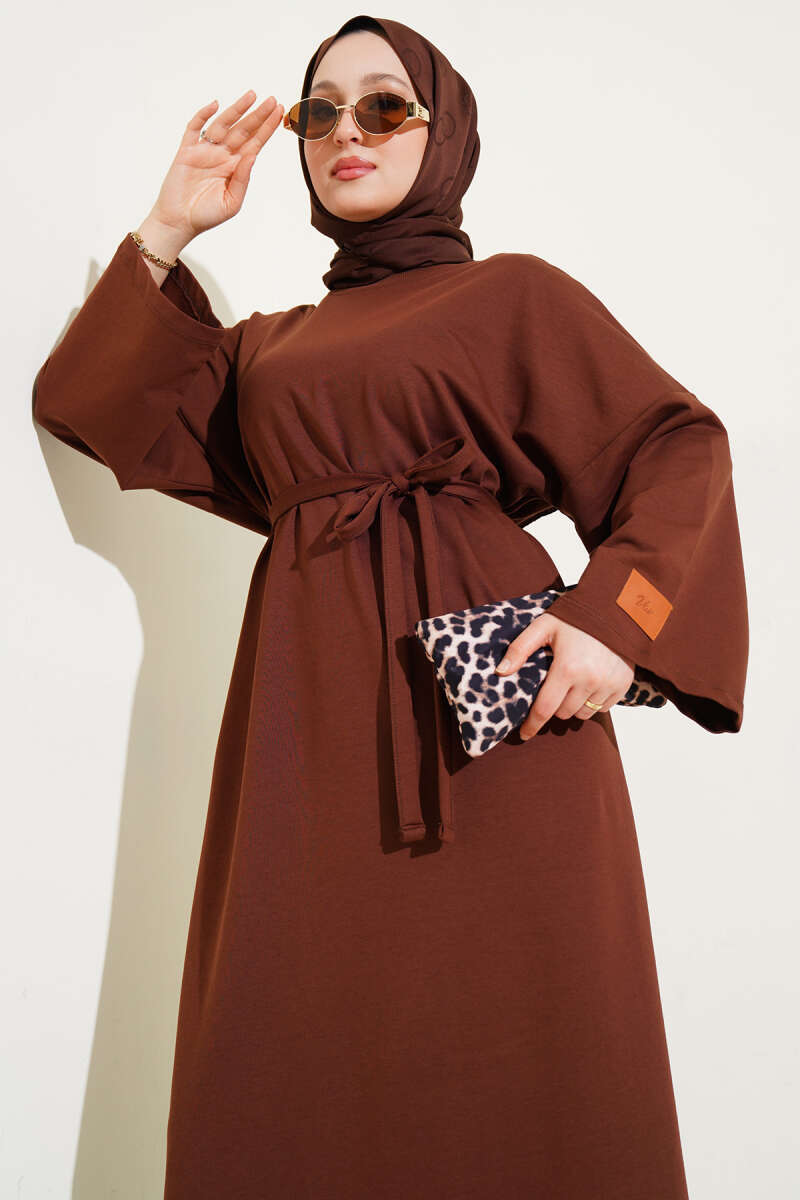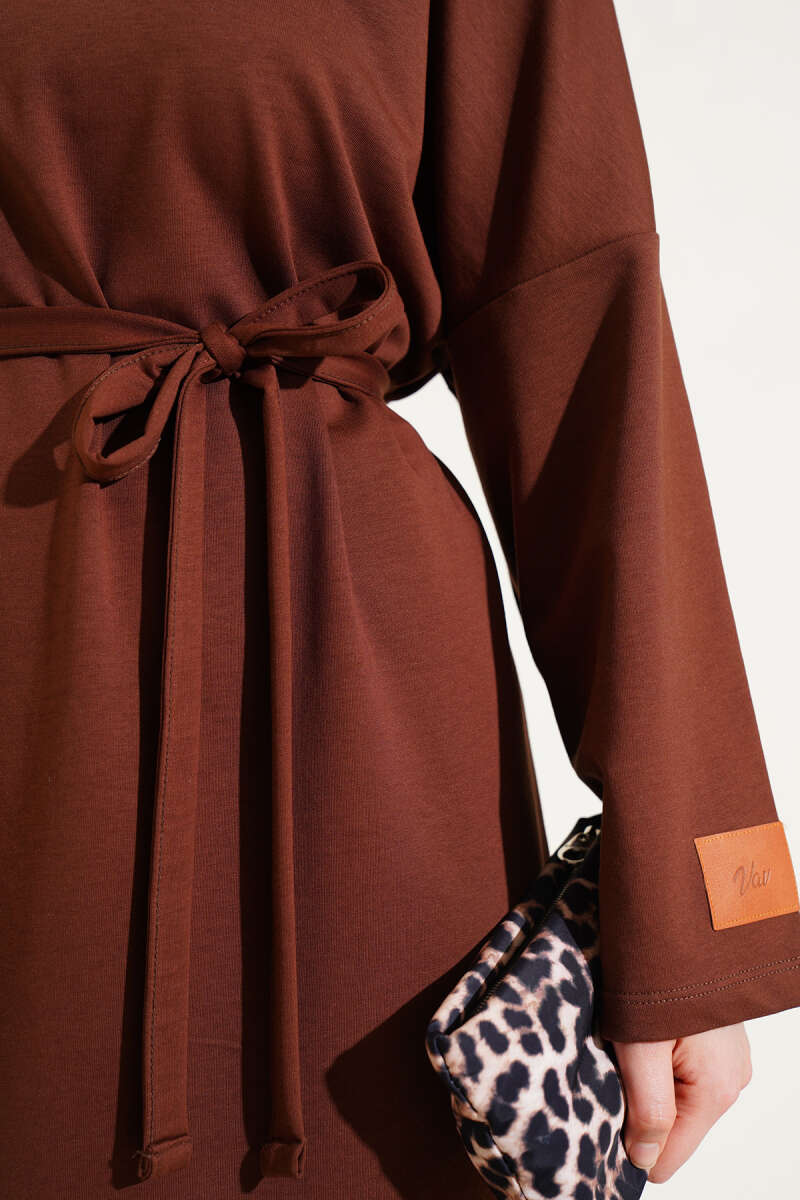 Arma Detaylı Kuşaklı Basic Elbise Kahve