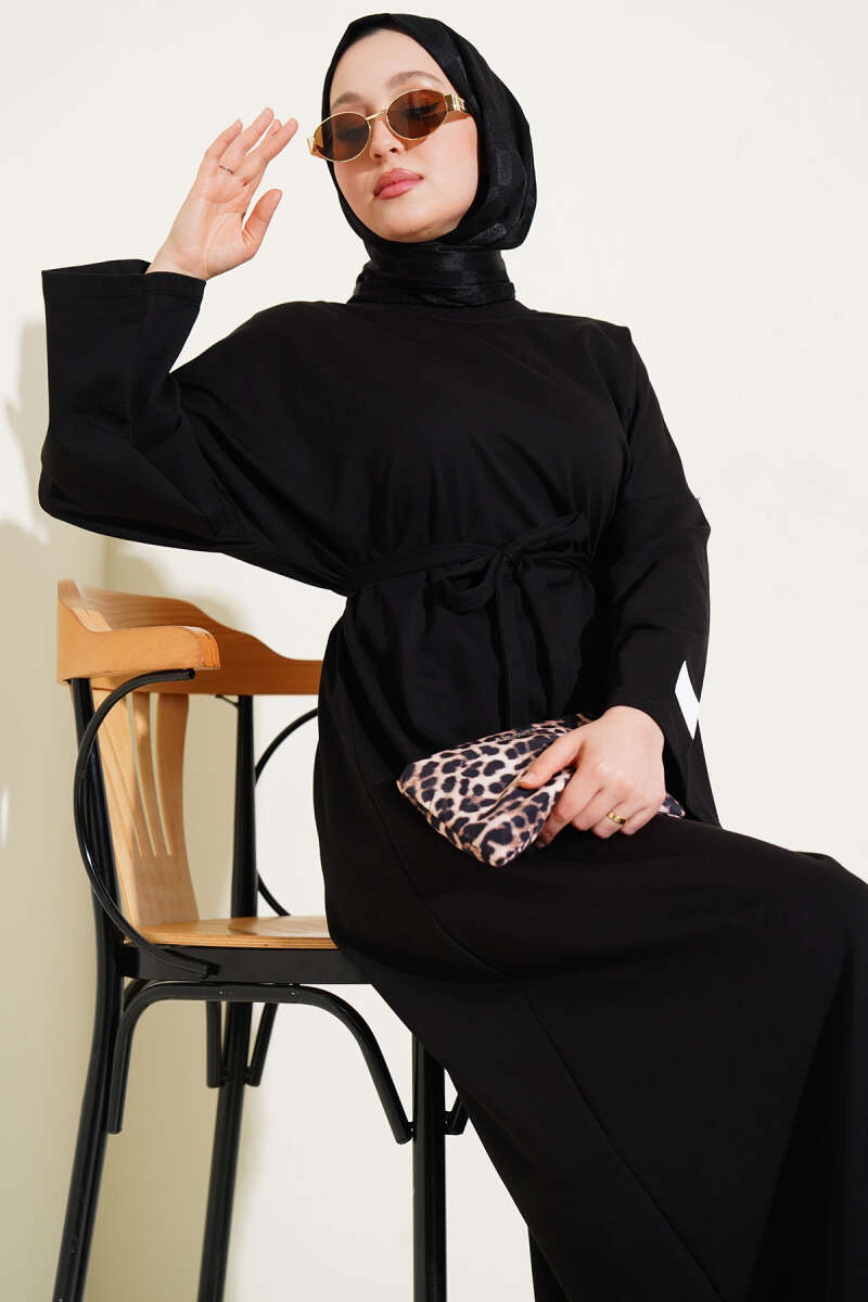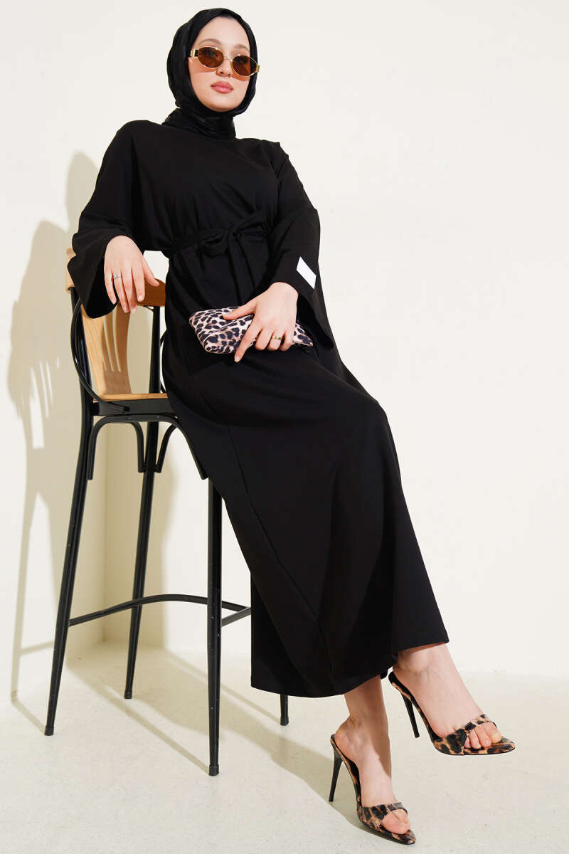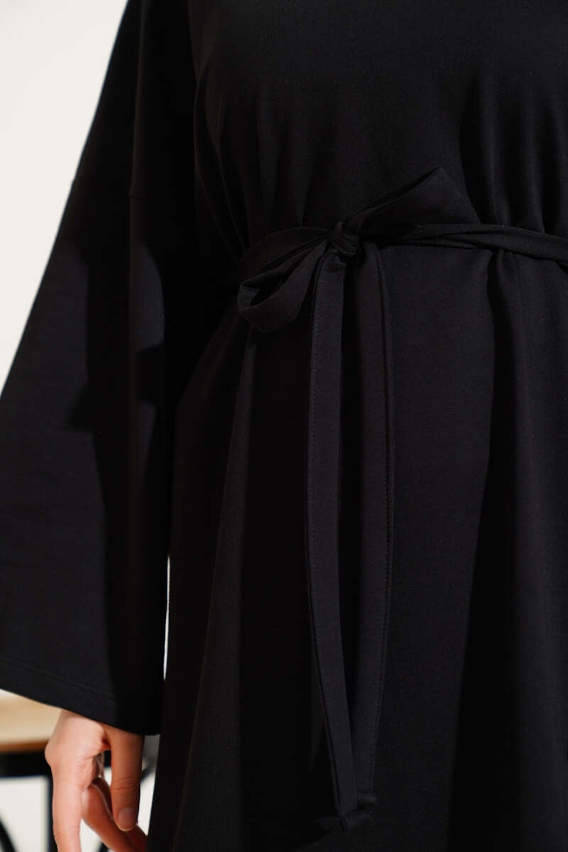Arma Detaylı Kuşaklı Basic Elbise Siyah