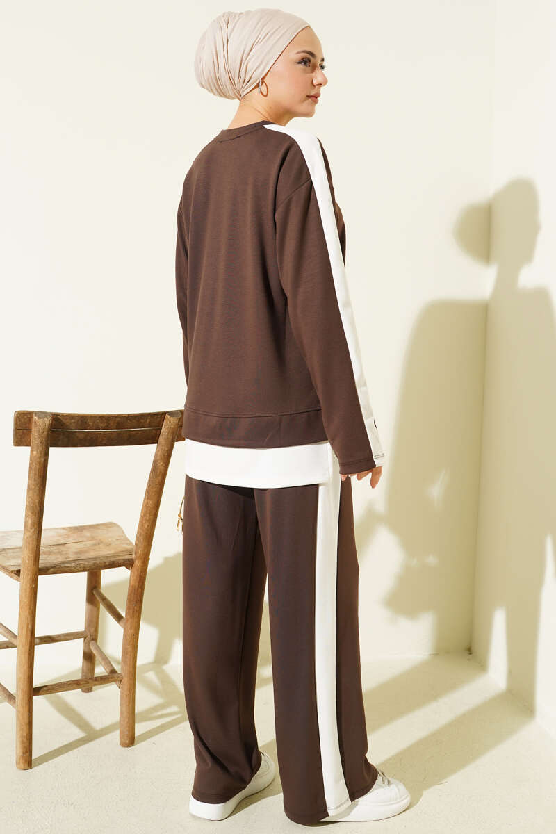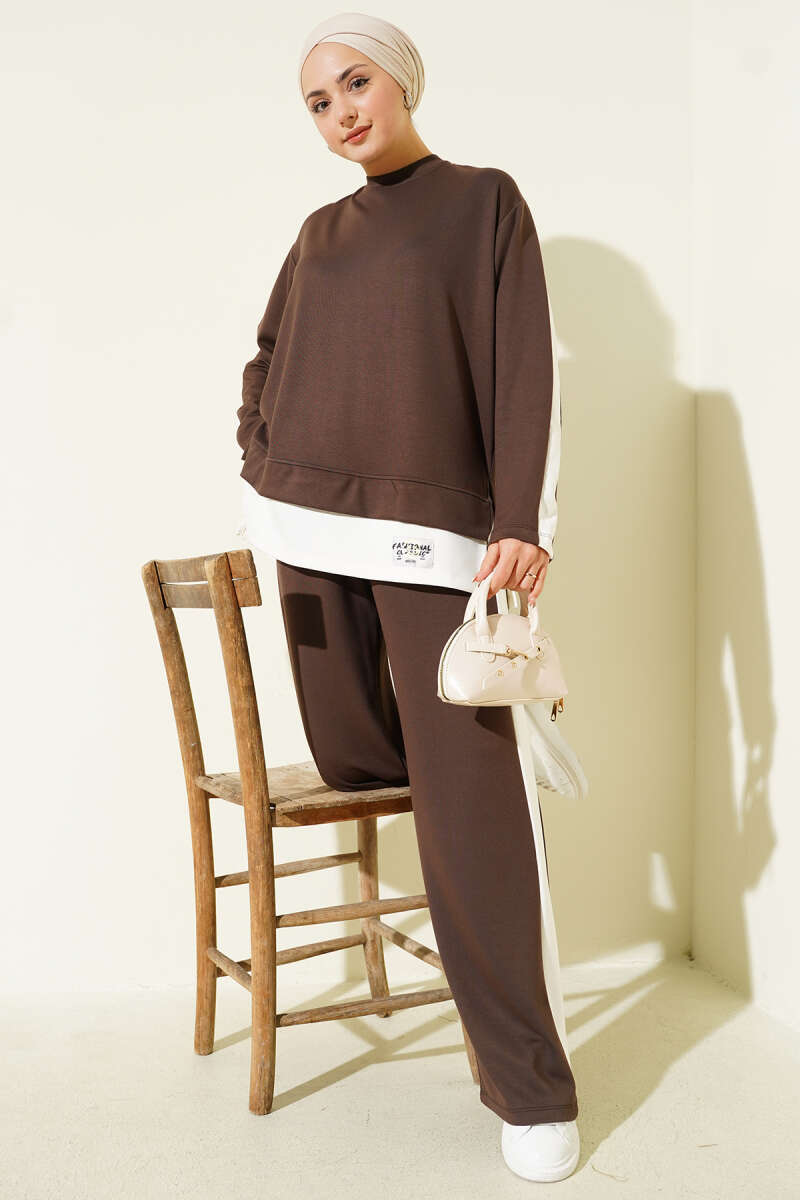 Kruvaze Yaka Ceket Etekli İkili Takım Kahve