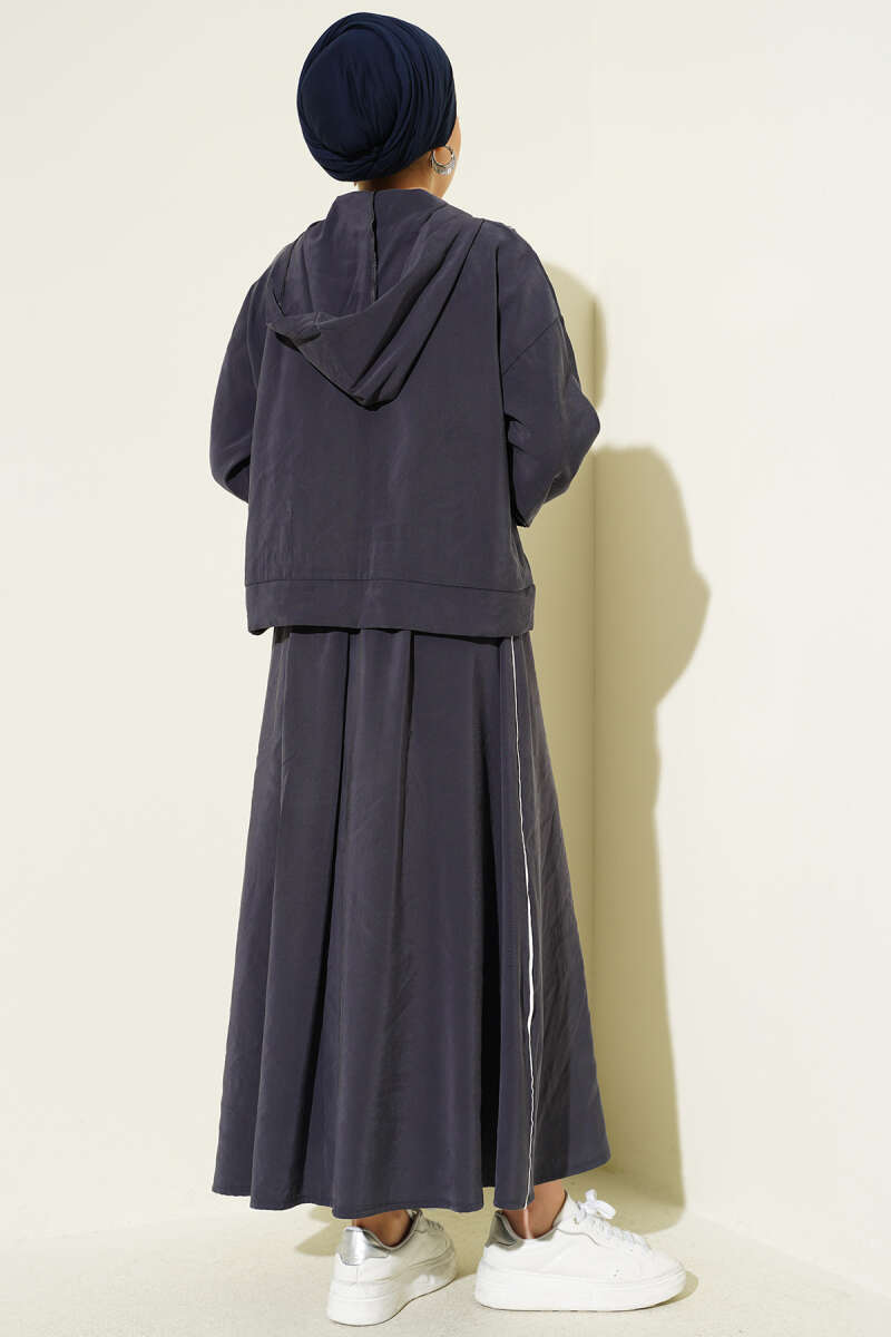 Arma Detaylı Şeritli Modal Etekli Takım Füme