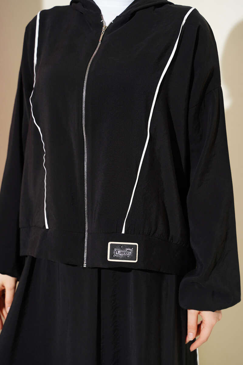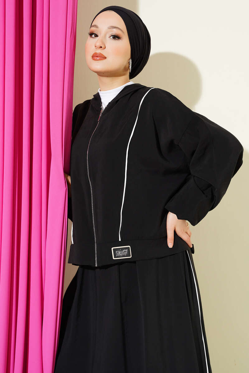 Sportif şıklığı konforla buluşturan bu modal etekli takım, dinamik şerit detayları ve fermuarlı üst tasarımıyla günlük stilinize modern bir dokunuş katıyor. Yumuşak dokulu modal kumaşı sayesinde gün boyu rahat bir hareket alanı sunarken, etek ve ceket kombinasyonu çabasız bir zarafet sergiliyor. Üst parçadaki arma detayı ve kapüşon formu tasarıma enerjik bir hava katarken, düz kesim uzun etek silüeti dengeli bir duruş sağlıyor. Hem hafta sonu aktiviteleri hem de rahat günlük kullanımlar için ideal olan bu takım, fonksiyonelliği ve stil sahibi çizgileri bir araya getiriyor.
