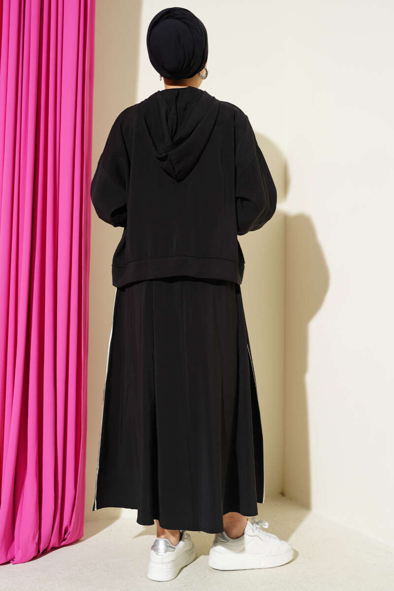 Arma Detaylı Şeritli Modal Etekli Takım Siyah