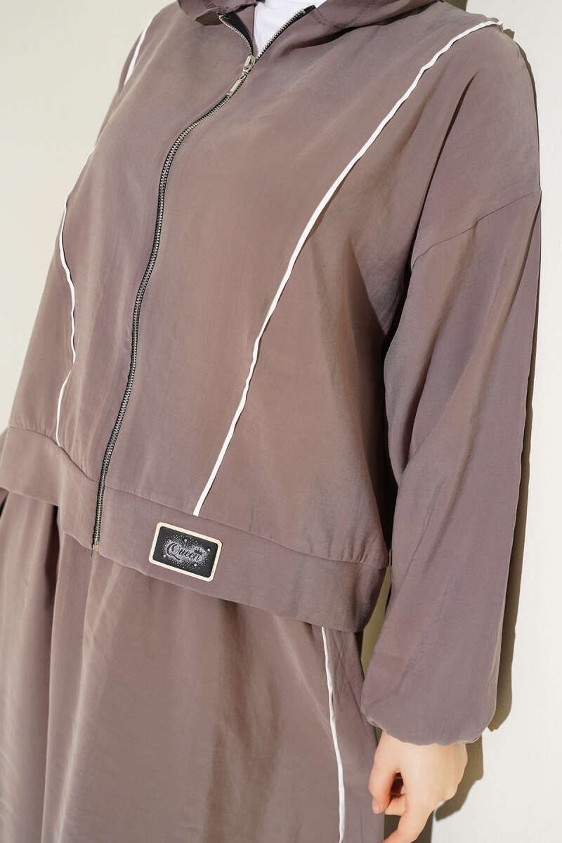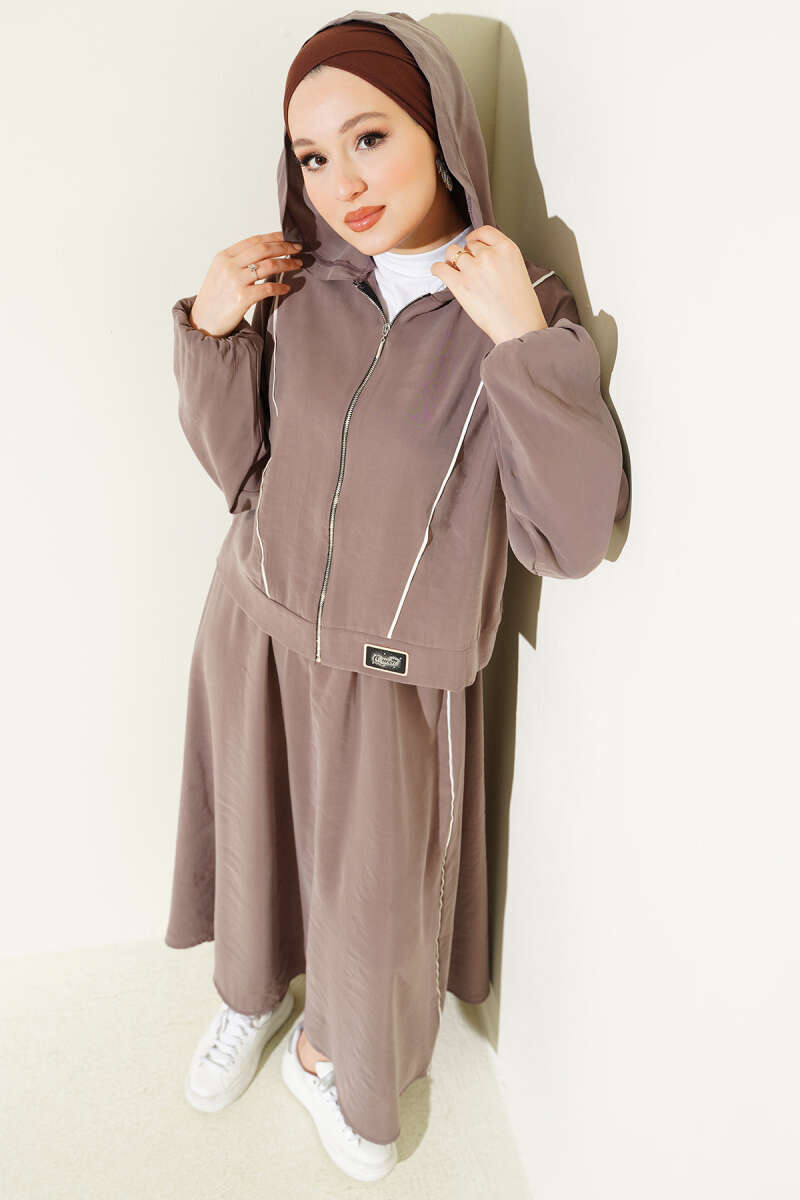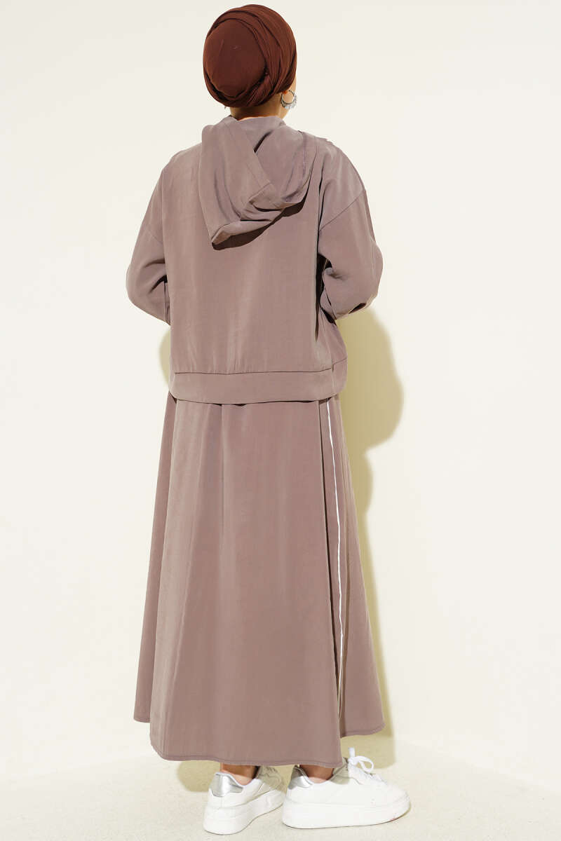 Arma Detaylı Şeritli Modal Etekli Takım Vizon