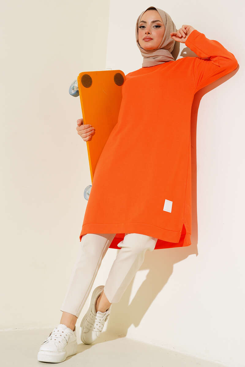 Yeni sezon tunik modelimiz sportif tarzıyla sizlerle beraber. Etek ucunda arma detayı bulunmaktadır. Etek ucu yırtmaçlıdır. Düşük omuz modeldir. Oversize model olup sportif tarzda kombinlerinizi tamamlayabilirsiniz.