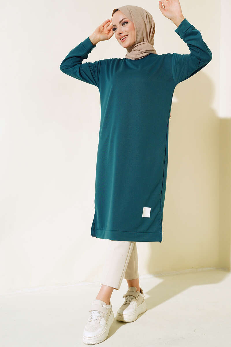 Yeni sezon tunik modelimiz sportif tarzıyla sizlerle beraber. Etek ucunda arma detayı bulunmaktadır. Etek ucu yırtmaçlıdır. Düşük omuz modeldir. Oversize model olup sportif tarzda kombinlerinizi tamamlayabilirsiniz.