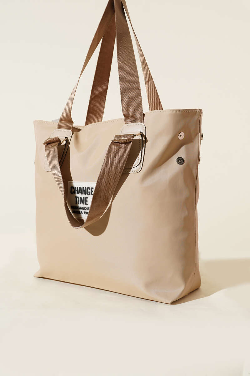 Arma Detaylı Yan Çıtçıtlı Çanta Bej