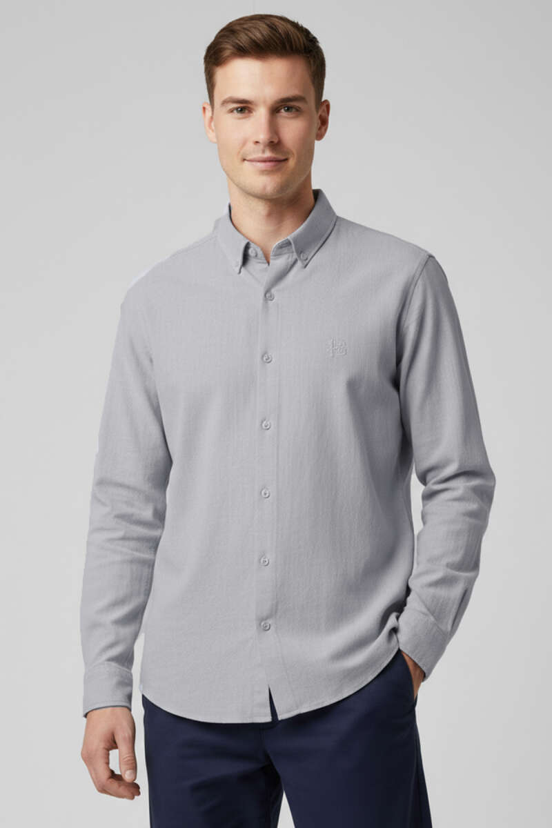 Arma Nakışlı Detaylı Erkek Gömlek Gri