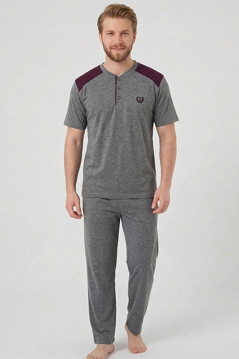 Armalı Büyük Beden Kısa Kol Erkek Pijama Takım Antrasit