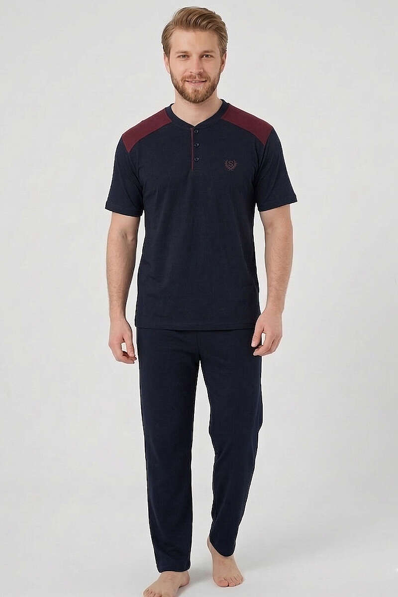 Armalı Büyük Beden Kısa Kol Erkek Pijama Takım Lacivert Mor