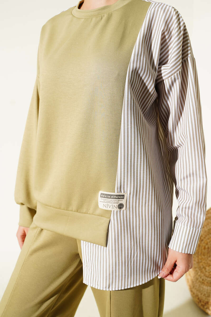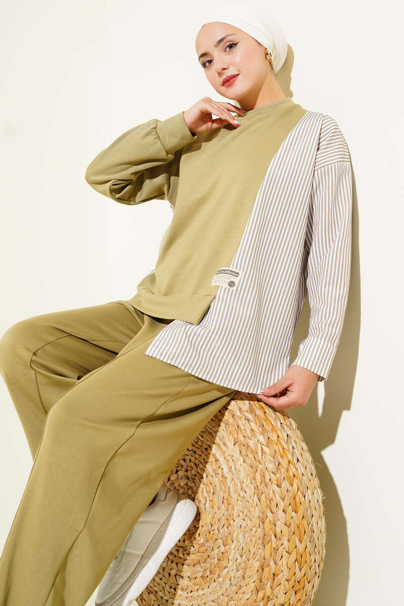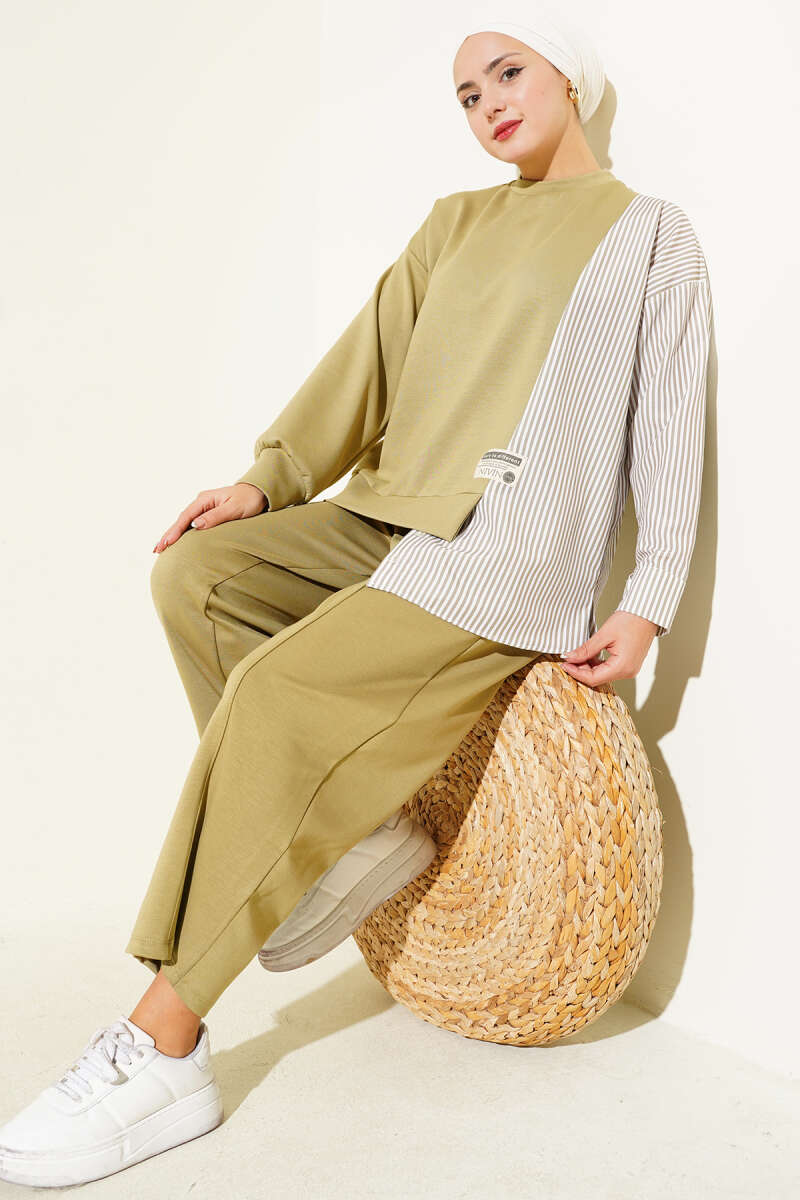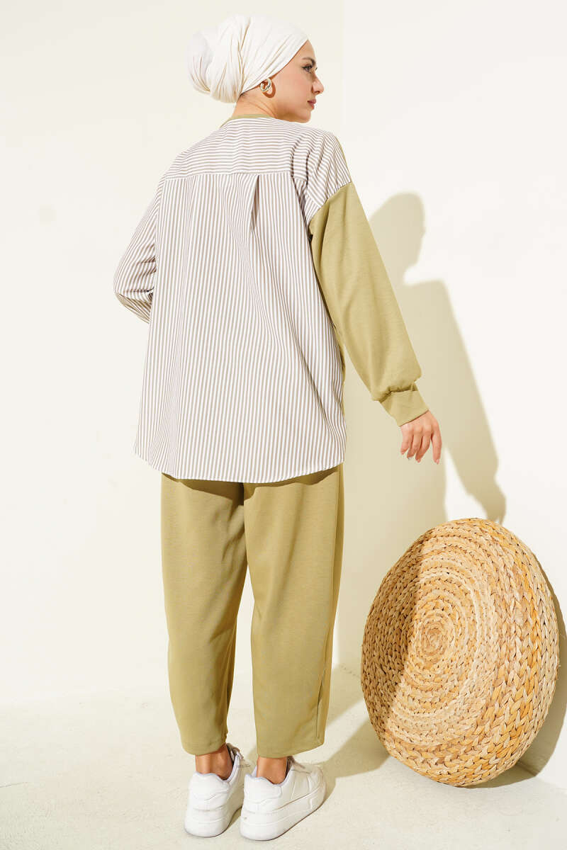 Fırfır Detaylı Bel Lastikli İkili Takım Haki