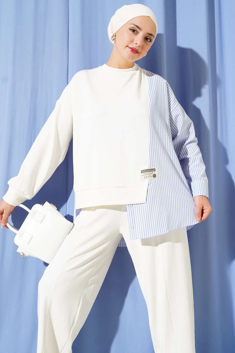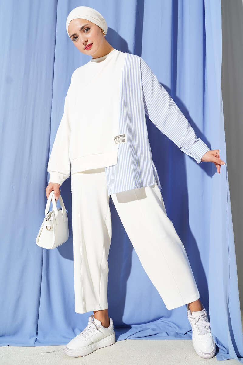 İnci Süslemeli Scuba İkili Takım Beyaz