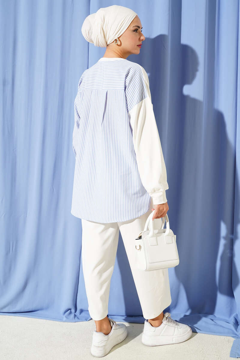 Yan Bağlamalı Kadife Fitilli İkili Takım Mavi