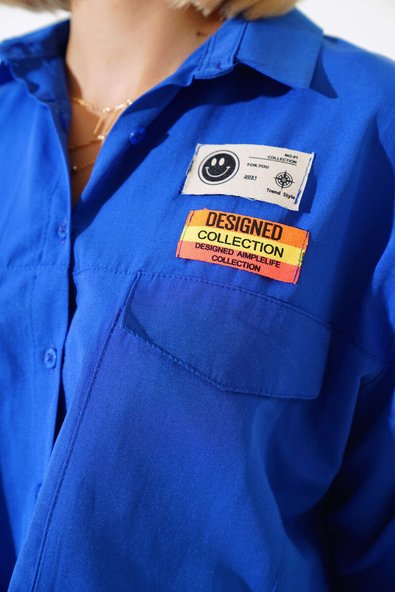 Uzun Kollu Yarım Fermuarlı Bluz Mavi