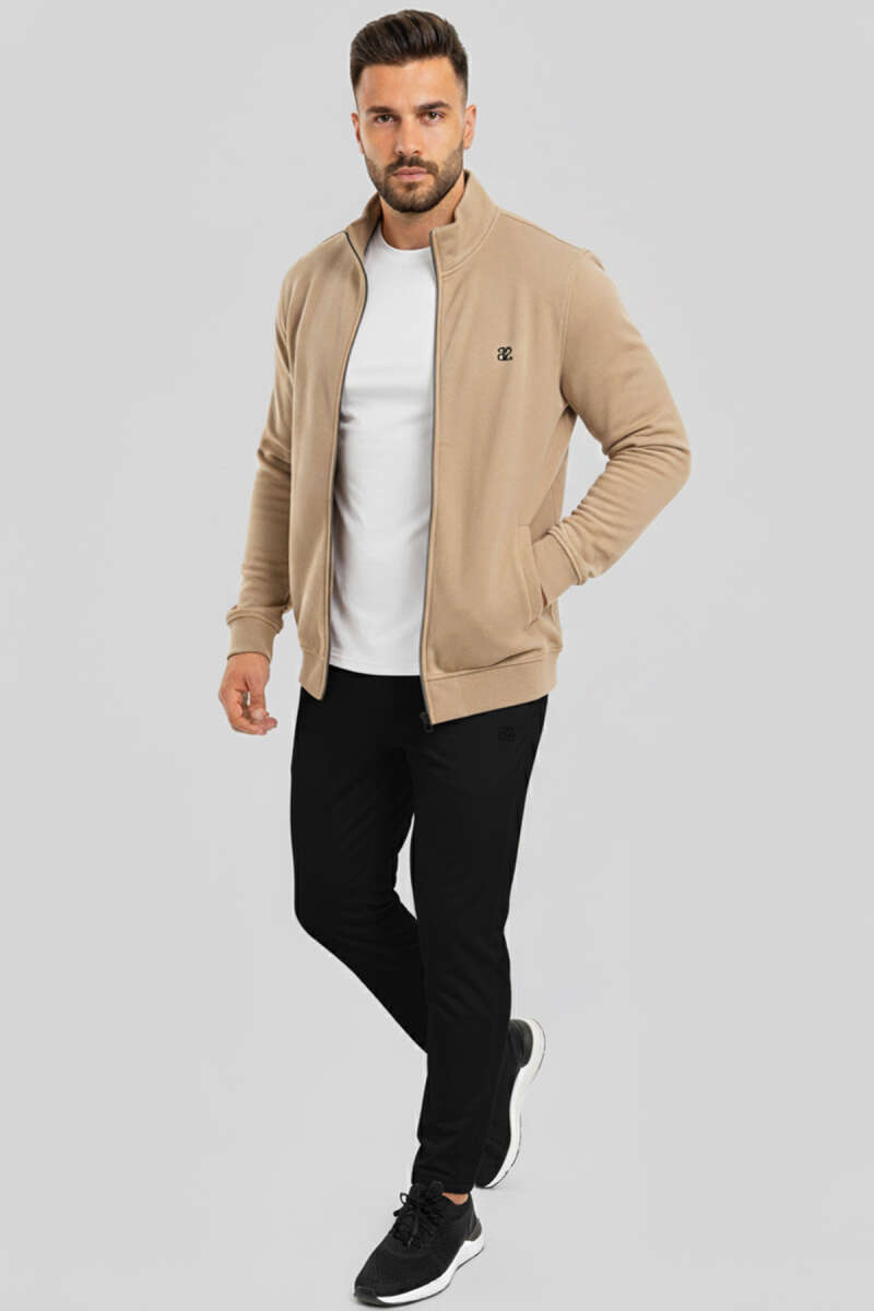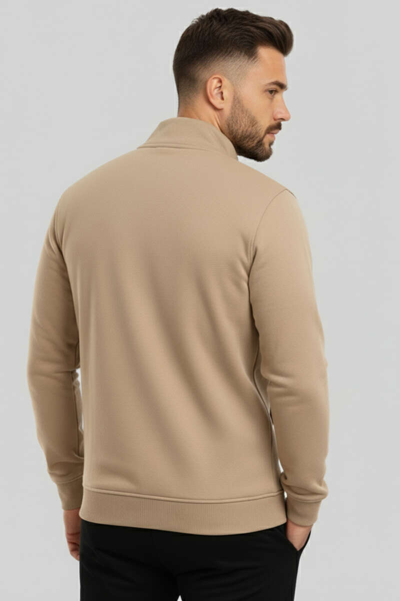 Armalı Fermuarlı Erkek Hırka Bej