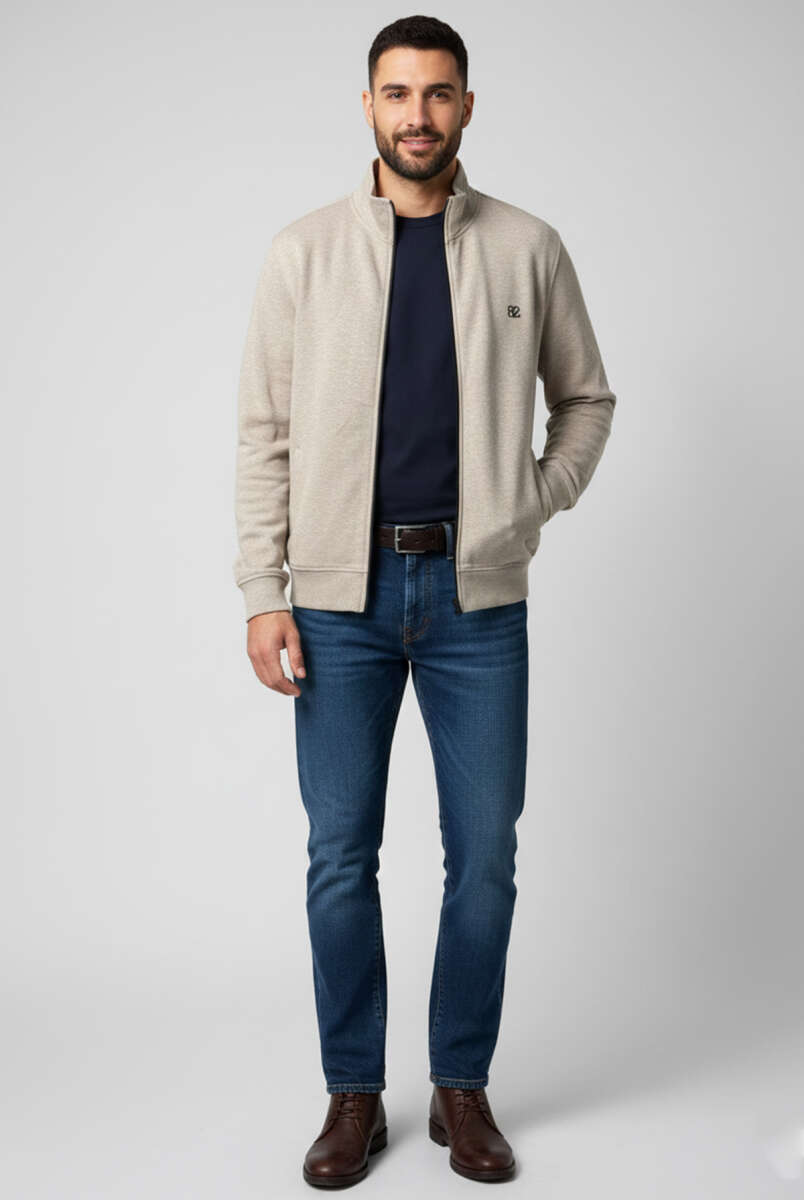 Armalı Fermuarlı Erkek Hırka Bej