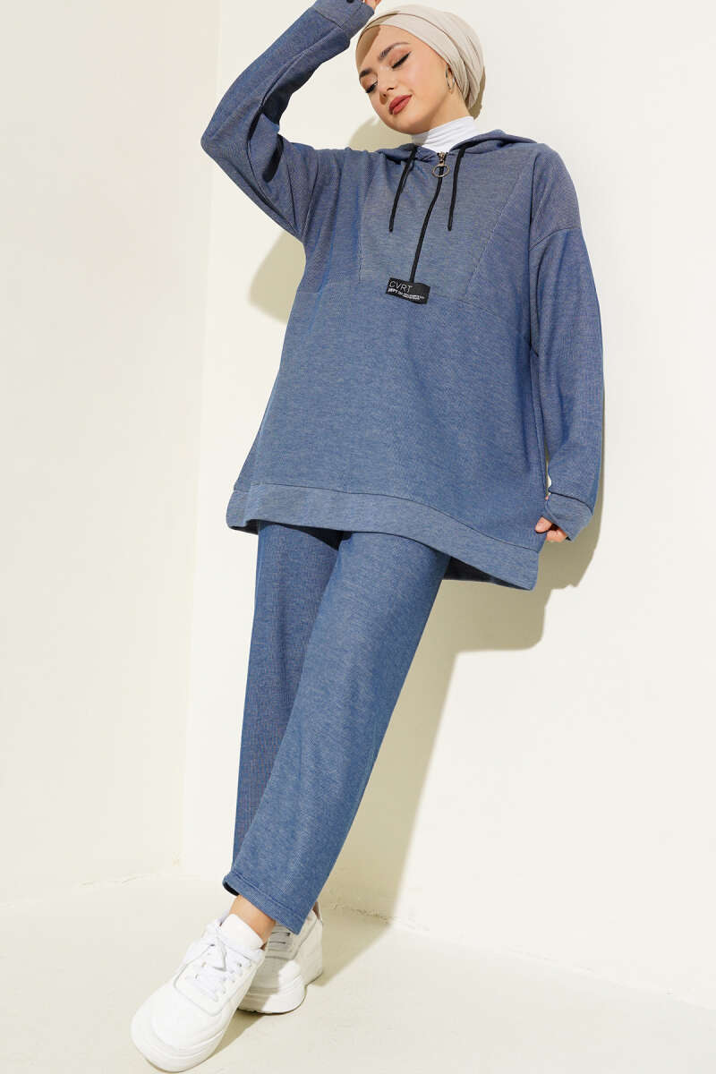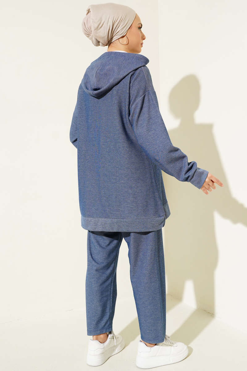 Armalı Fermuarlı Kapüşonlu İkili Takım İndigo