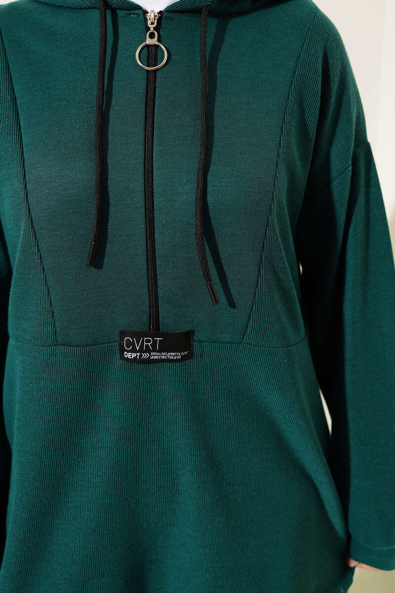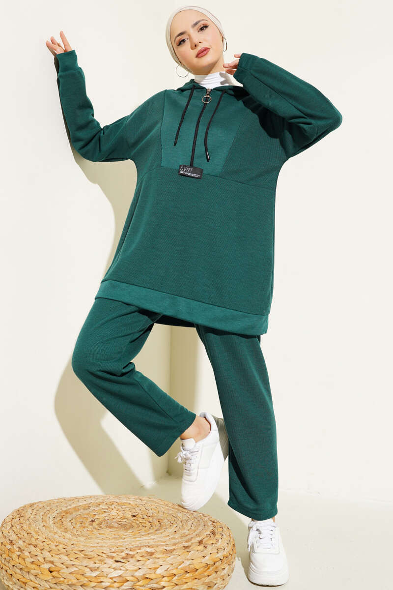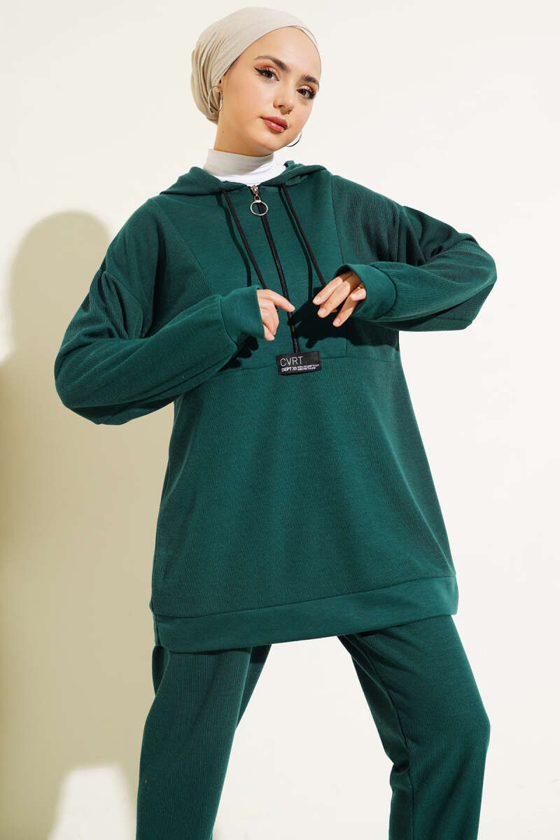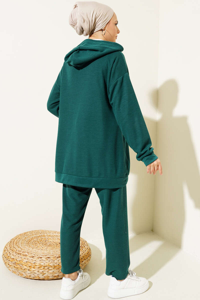 Armalı Fermuarlı Kapüşonlu İkili Takım Zümrüt