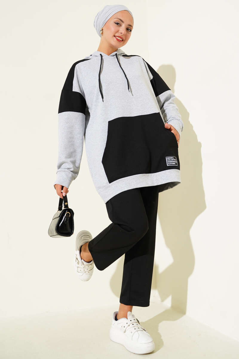 Armalı İki İpli Kapşonlu İkili Takım Siyah