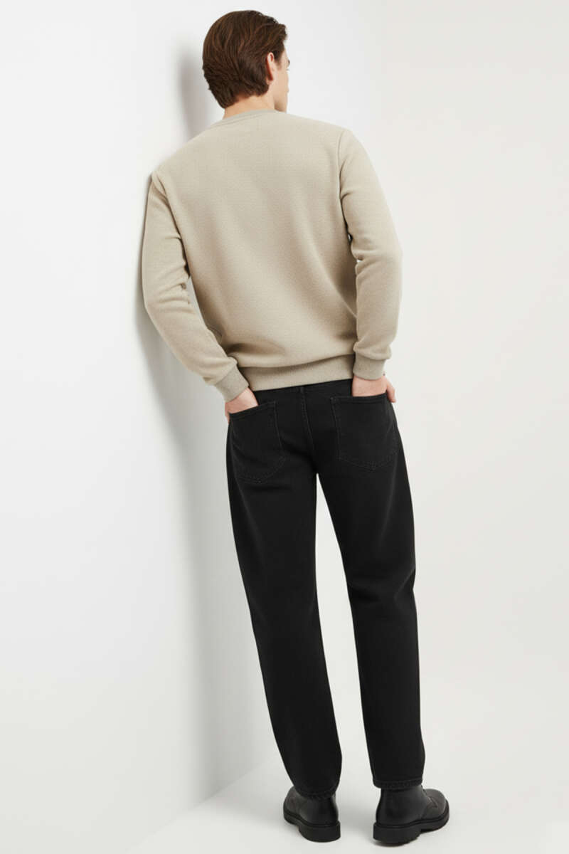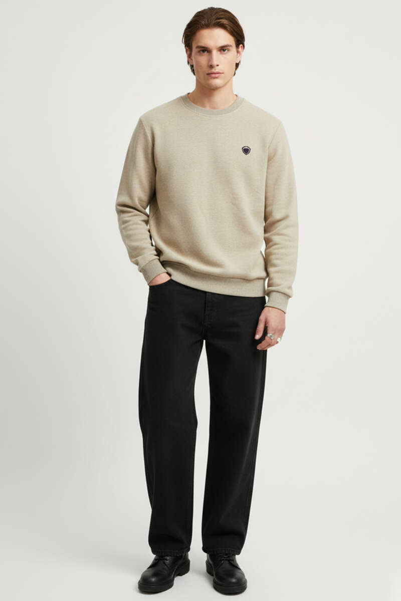 Waffle Kumaş Polo Yaka Erkek Sweatshirt Ekru