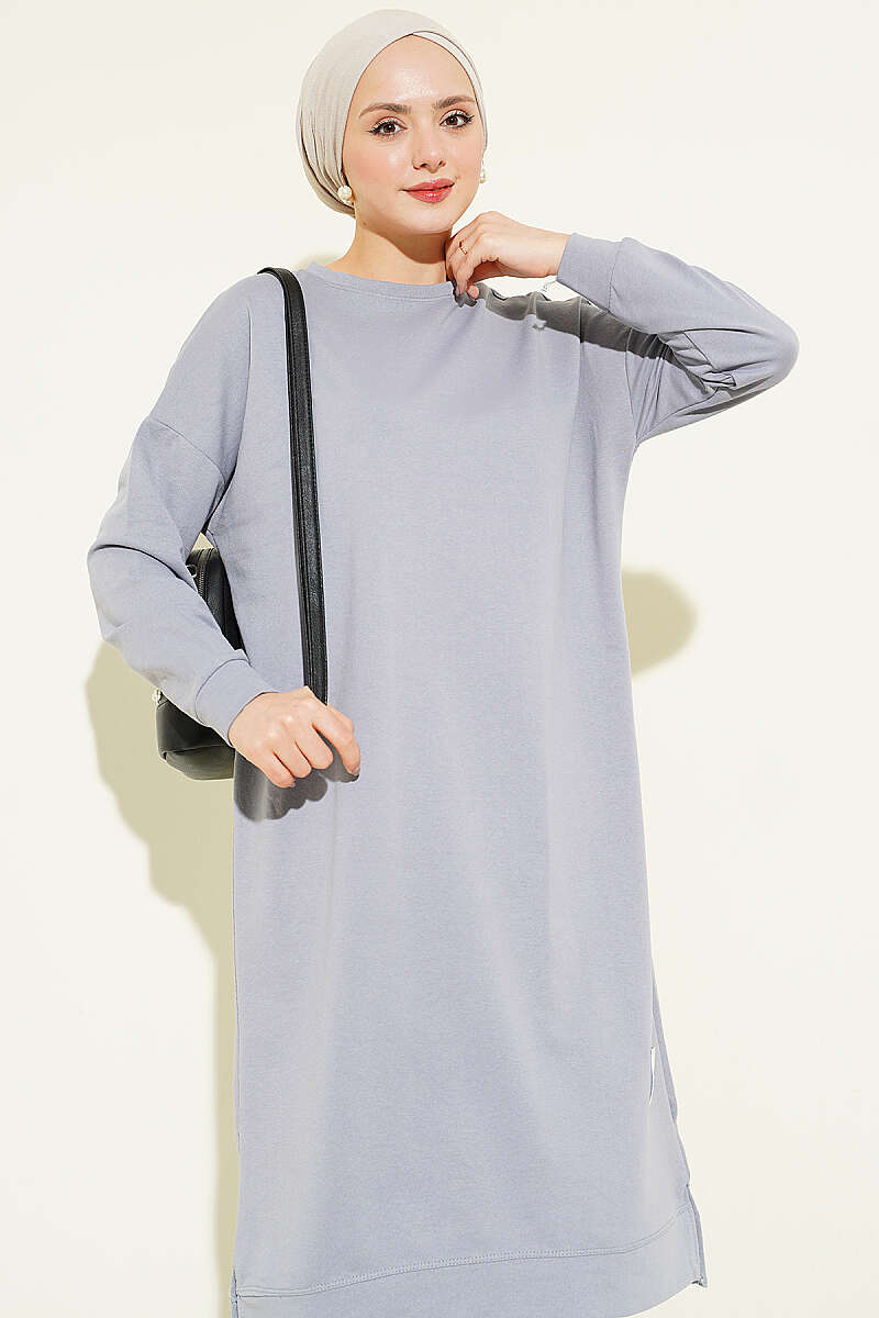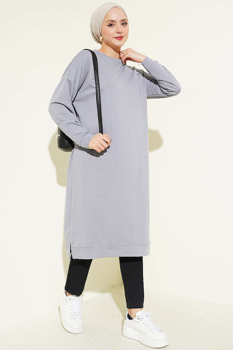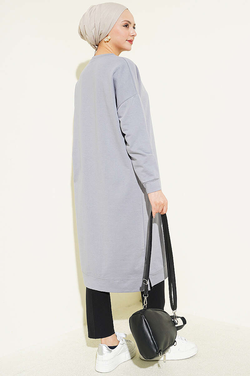 Armalı Uzun Basic Tunik Gri