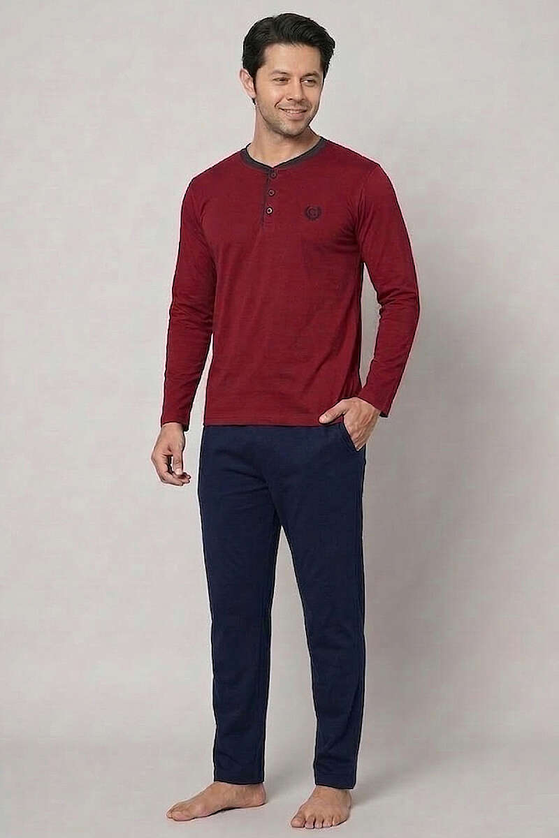 Armalı Uzun Kol Erkek Pijama Takım Bordo