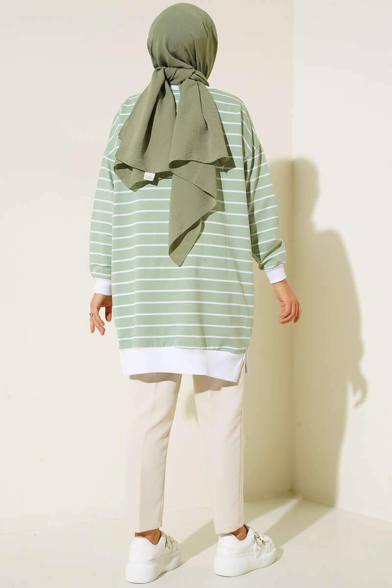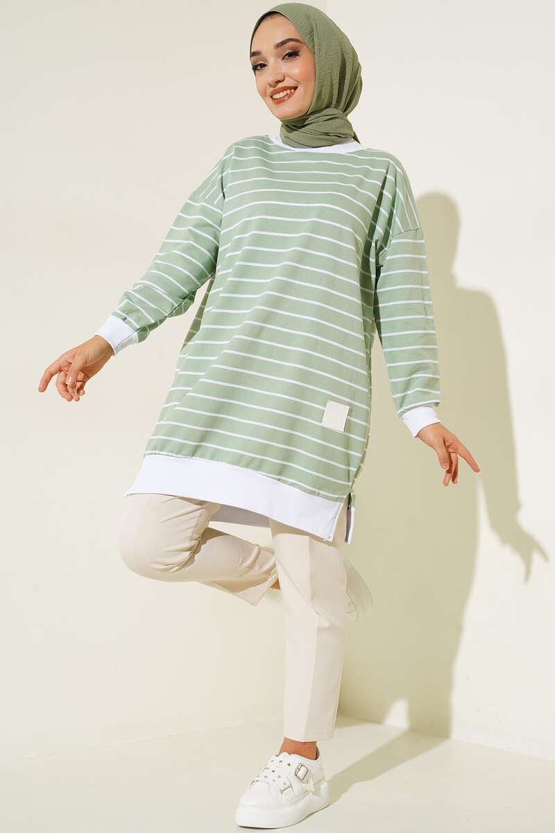 Ürün BilgisiBoy: 84 cmGöğüs: 118 cmBel: 114 cmYeni sezon tuniğimiz bisiklet yakalıdır. Tuniğin bilekleri lastikli olup etek uçları ribanadır ve yandan yırtmaçlıdır. Tuniğimiz yatay çizgili, deri armalı modeldir. Birbirinden güzel dört farklı renk seçeneği mevcuttur.Kumaş Bilgisi%70 Cotton%30 PolyesterModel BilgisiBoy : 162 cmGöğüs : 82 cmBel : 65 cmKalça : 90 cmModelin üzerindeki ürün - S- bedendir.