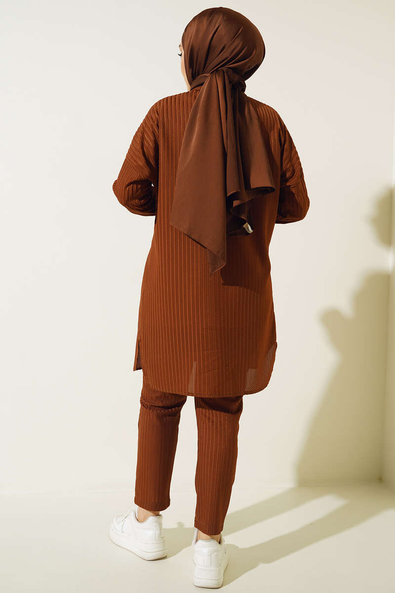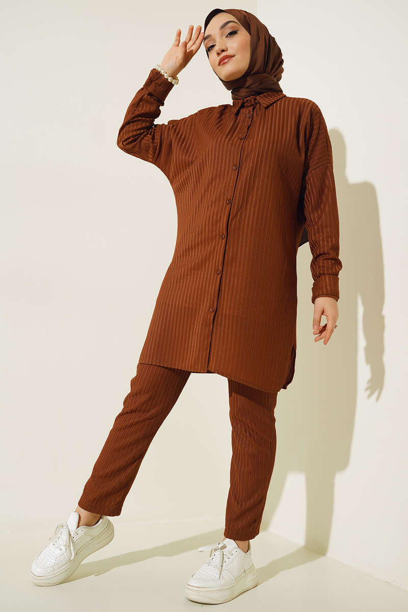 Yeni sezon tunik pantolon ikili takımımız bu yazın en favori modellerindendir. Tuniğimiz armonika desen kumaşıyla dikkat çekmektedir. Bilekleri ve önü düğmeli olan tuniğimiz uzun ve rahat bir yapıdadır. Pantolonumuz cepsiz modeldir. Renk seçenekleri mevcuttur.
