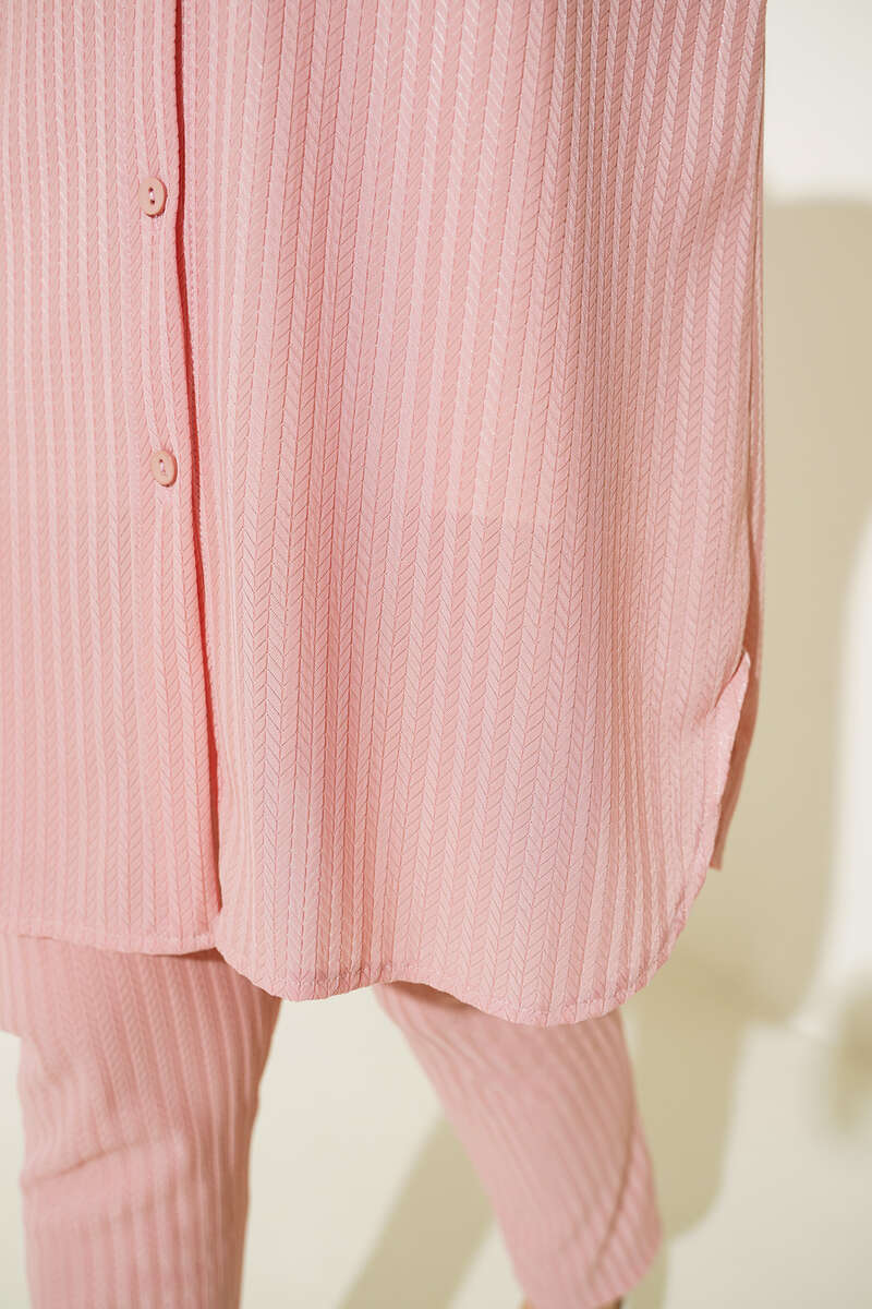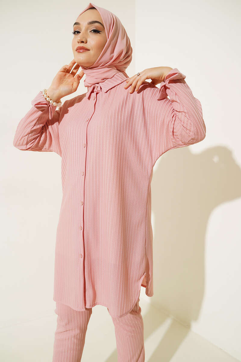 Yeni sezon tunik pantolon ikili takımımız bu yazın en favori modellerindendir. Tuniğimiz armonika desen kumaşıyla dikkat çekmektedir. Bilekleri ve önü düğmeli olan tuniğimiz uzun ve rahat bir yapıdadır. Pantolonumuz cepsiz modeldir. Renk seçenekleri mevcuttur.