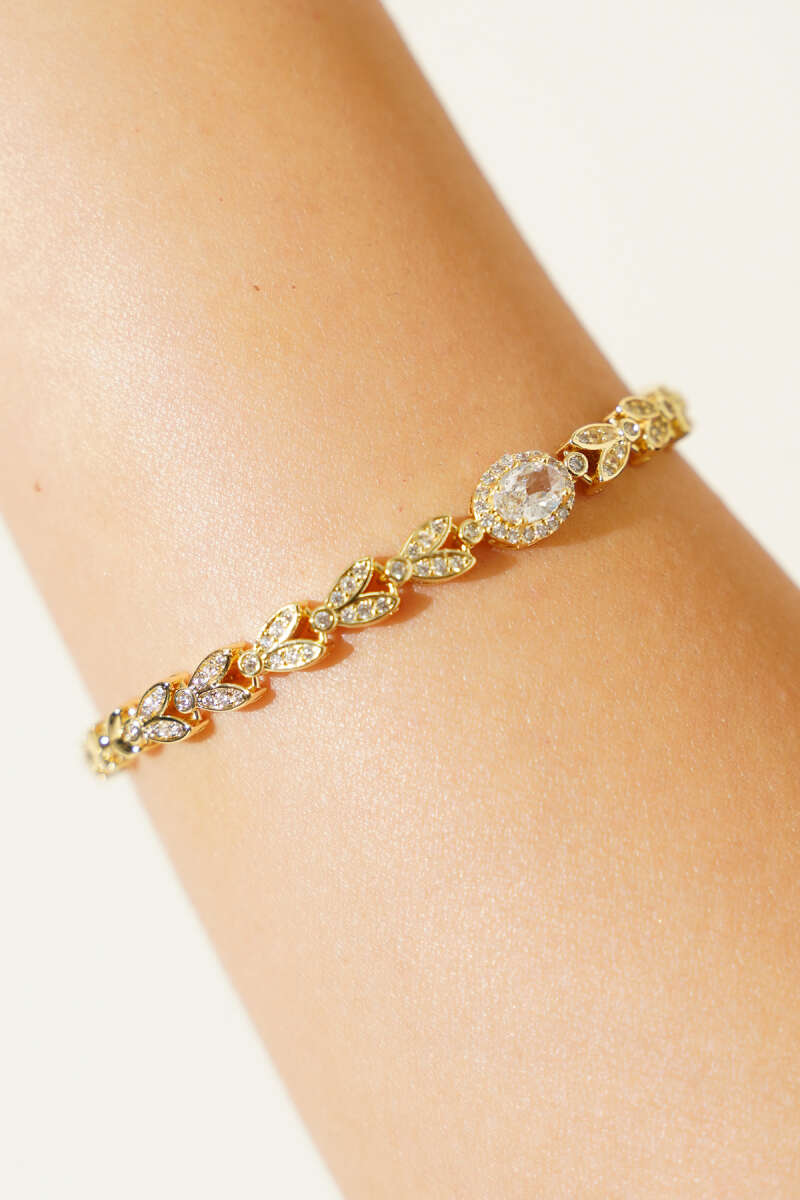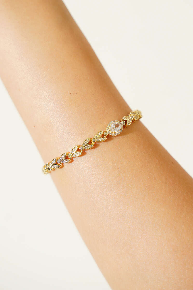Çiçek Su Yolu Taşlı Bileklik Gold