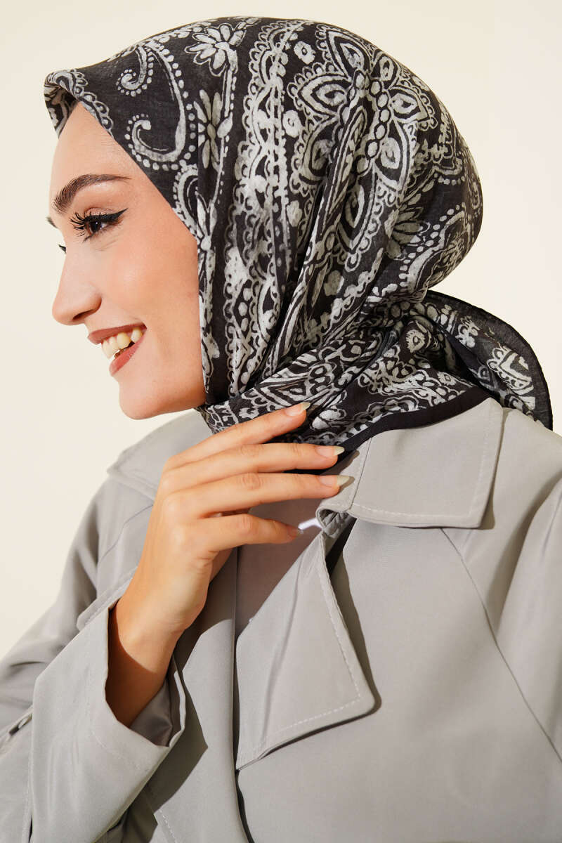 Arya Otantik Desenli Eşarp Antrasit