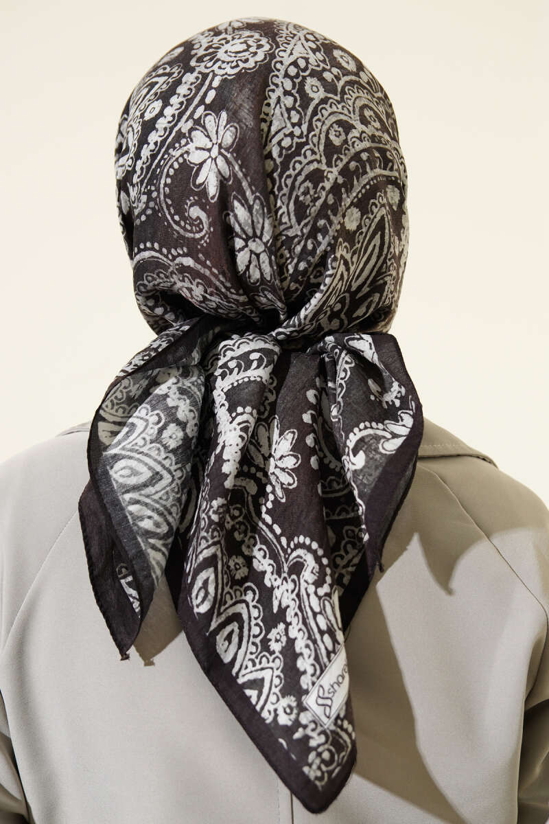 Piksel Paisley Desen Şal Siyah Bej