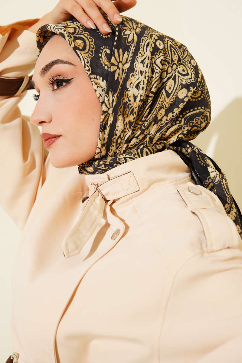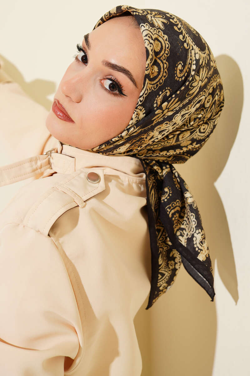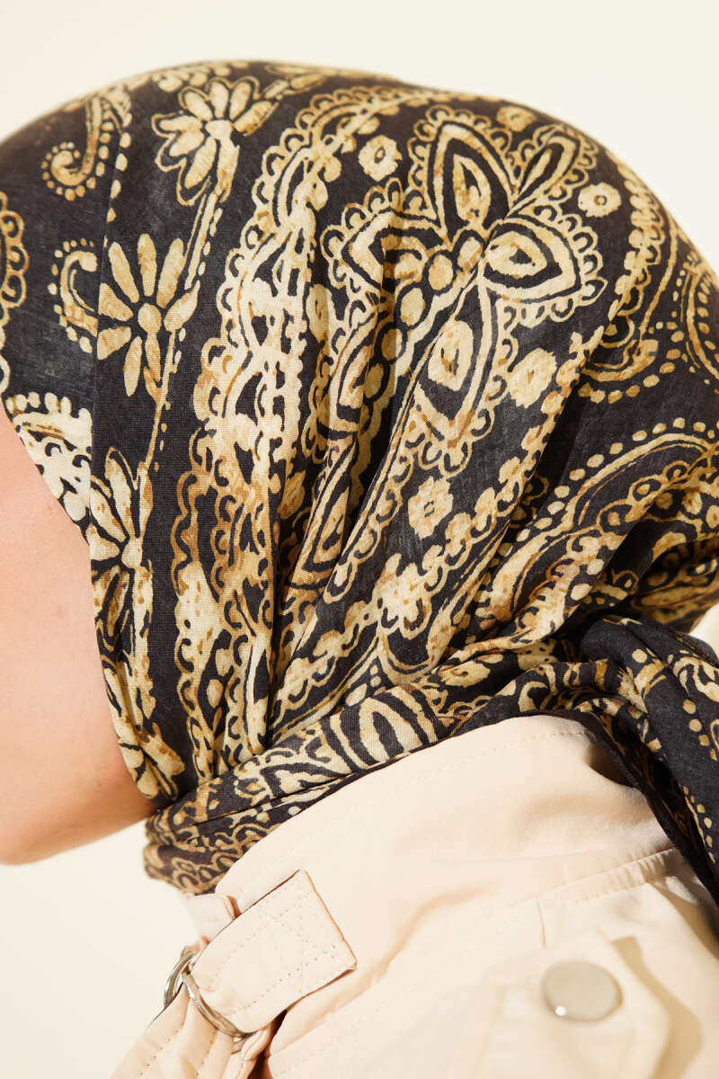 Arya Otantik Desenli Eşarp Siyah