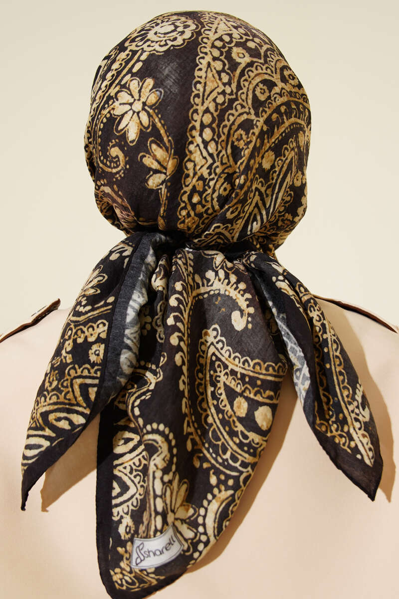 Piksel Paisley Desen Şal Siyah Bej