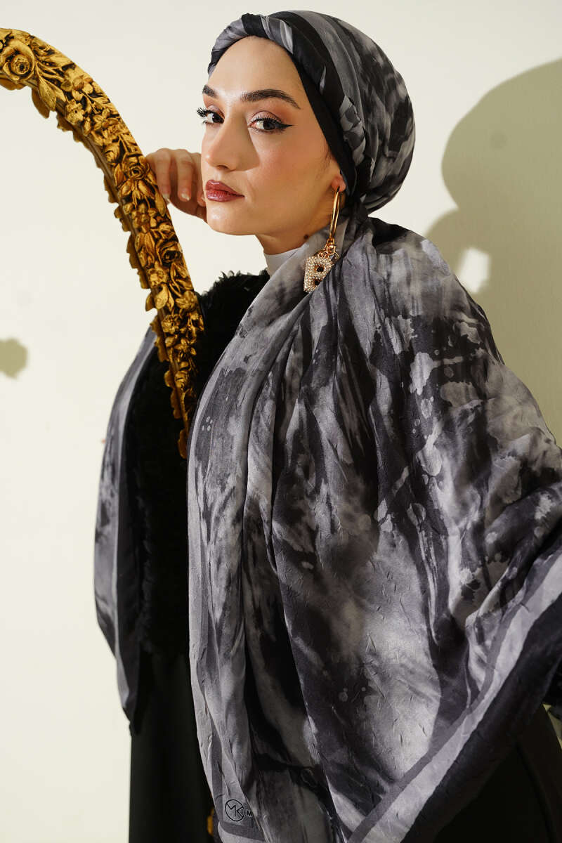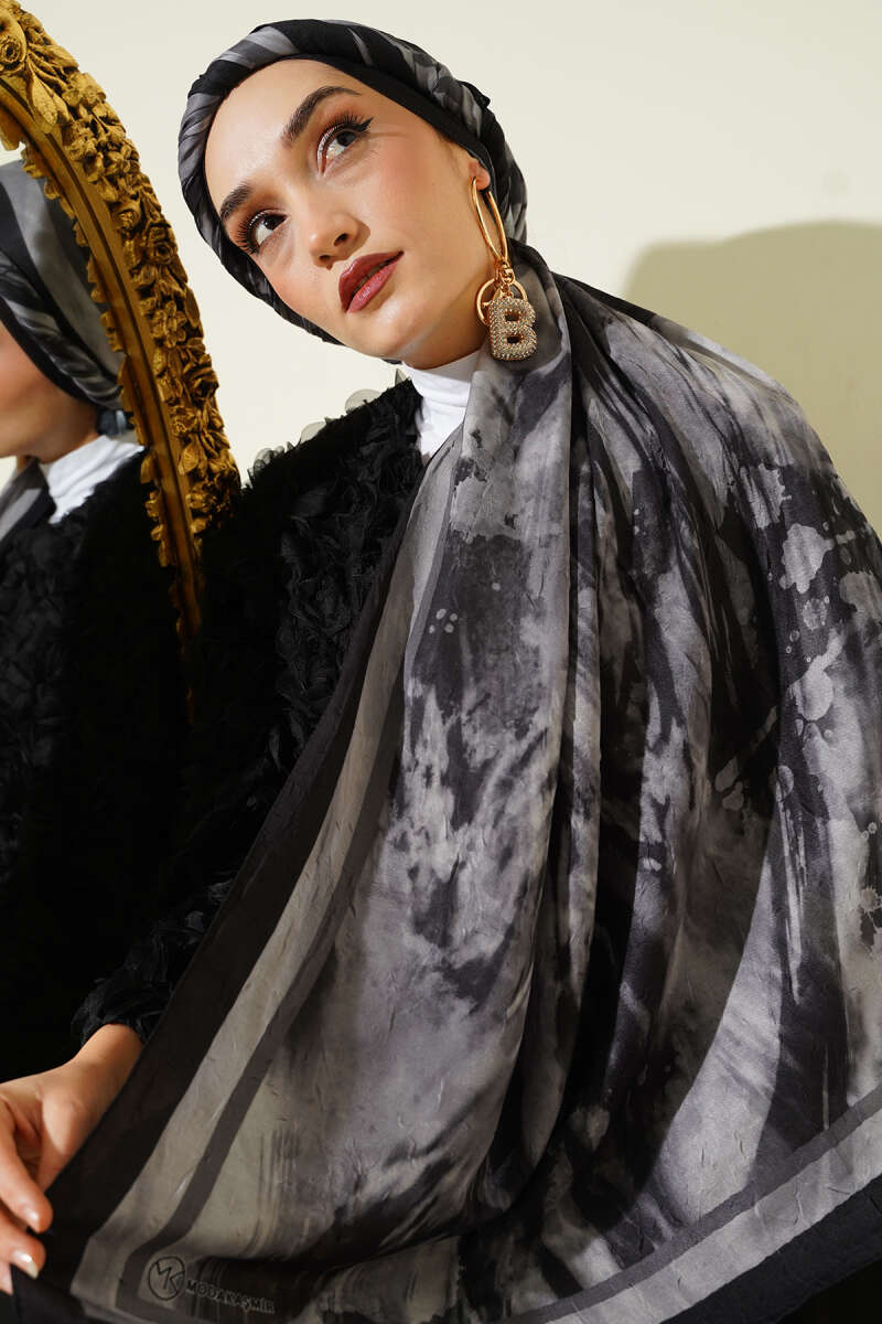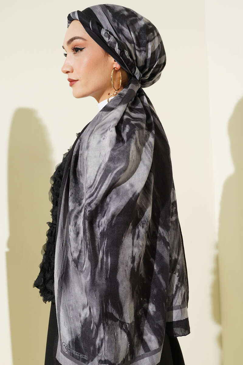 Ebruli Desen Bambu Kraş Şal Soft Kahve