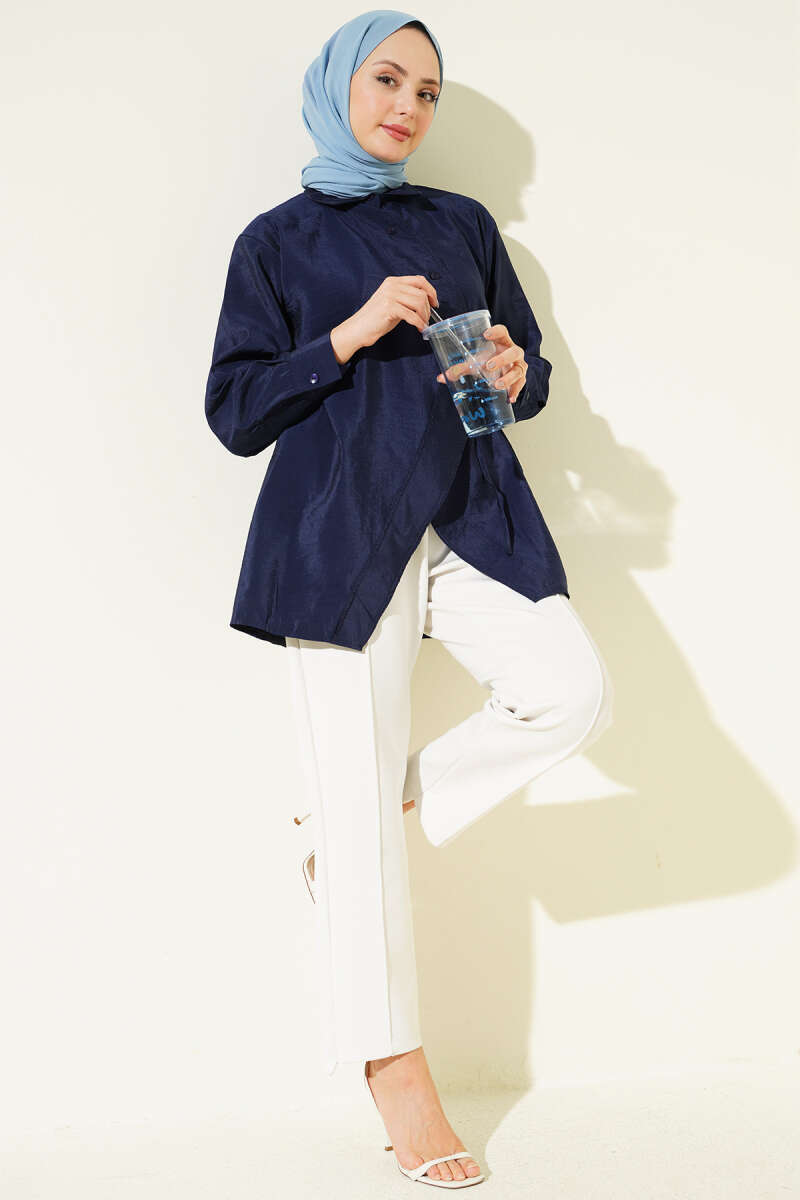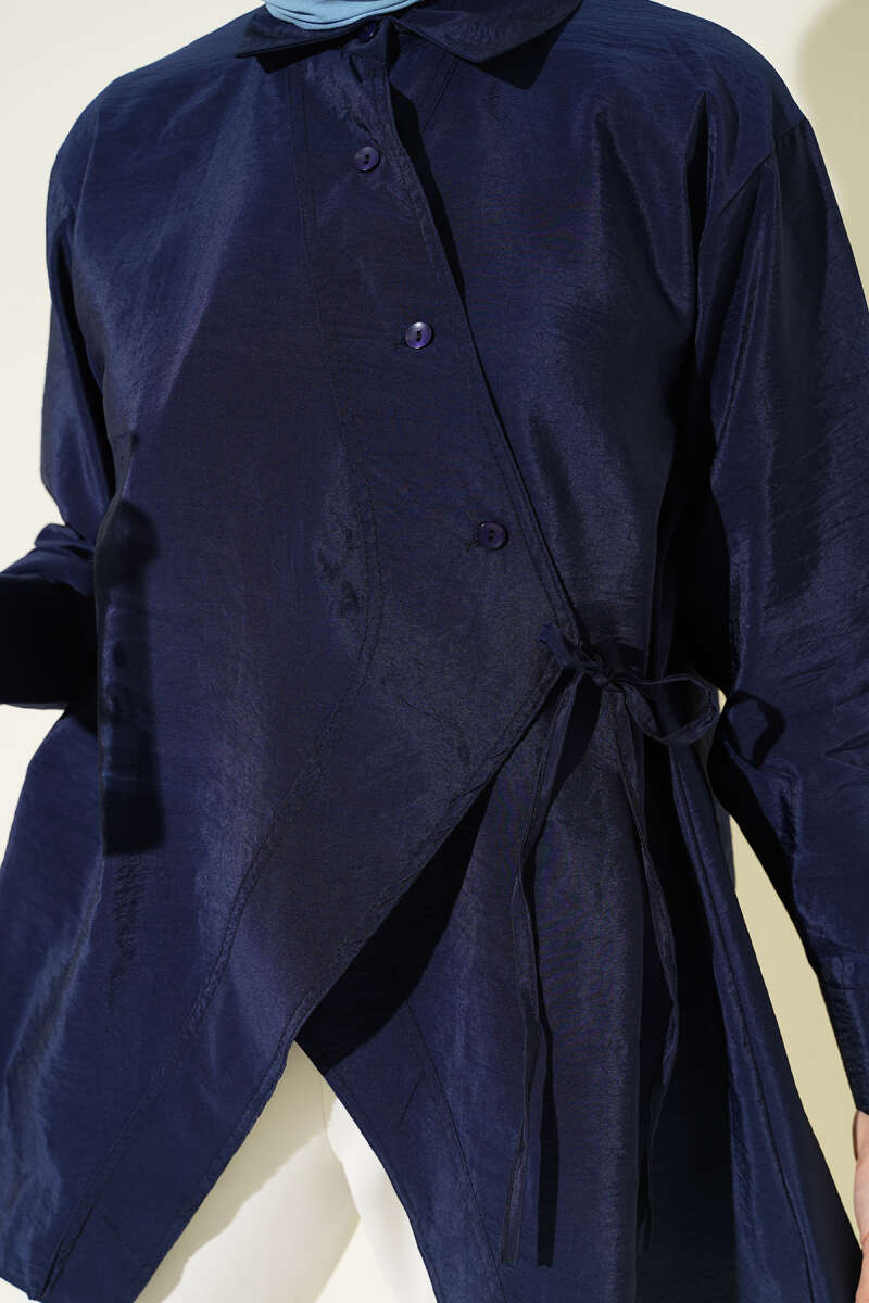 Klasik gömlek formuna modern bir yorum getiren bu Asitmetrik Bağlamalı Gömlek, özel dokusu ve iddialı kesimiyle stilinizi bir adım öne taşıyor. Hem günlük şıklığınızda hem de akşam davetlerinizde asaletinizle göz doldurmanızı sağlar.