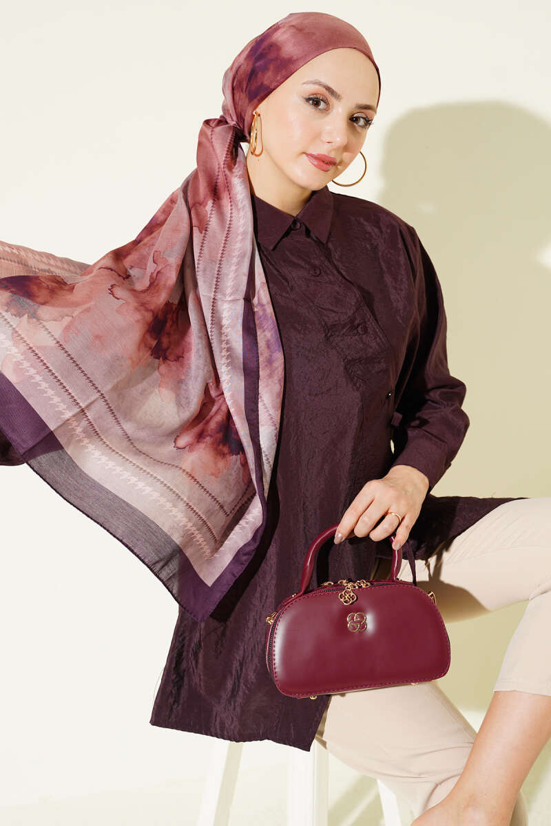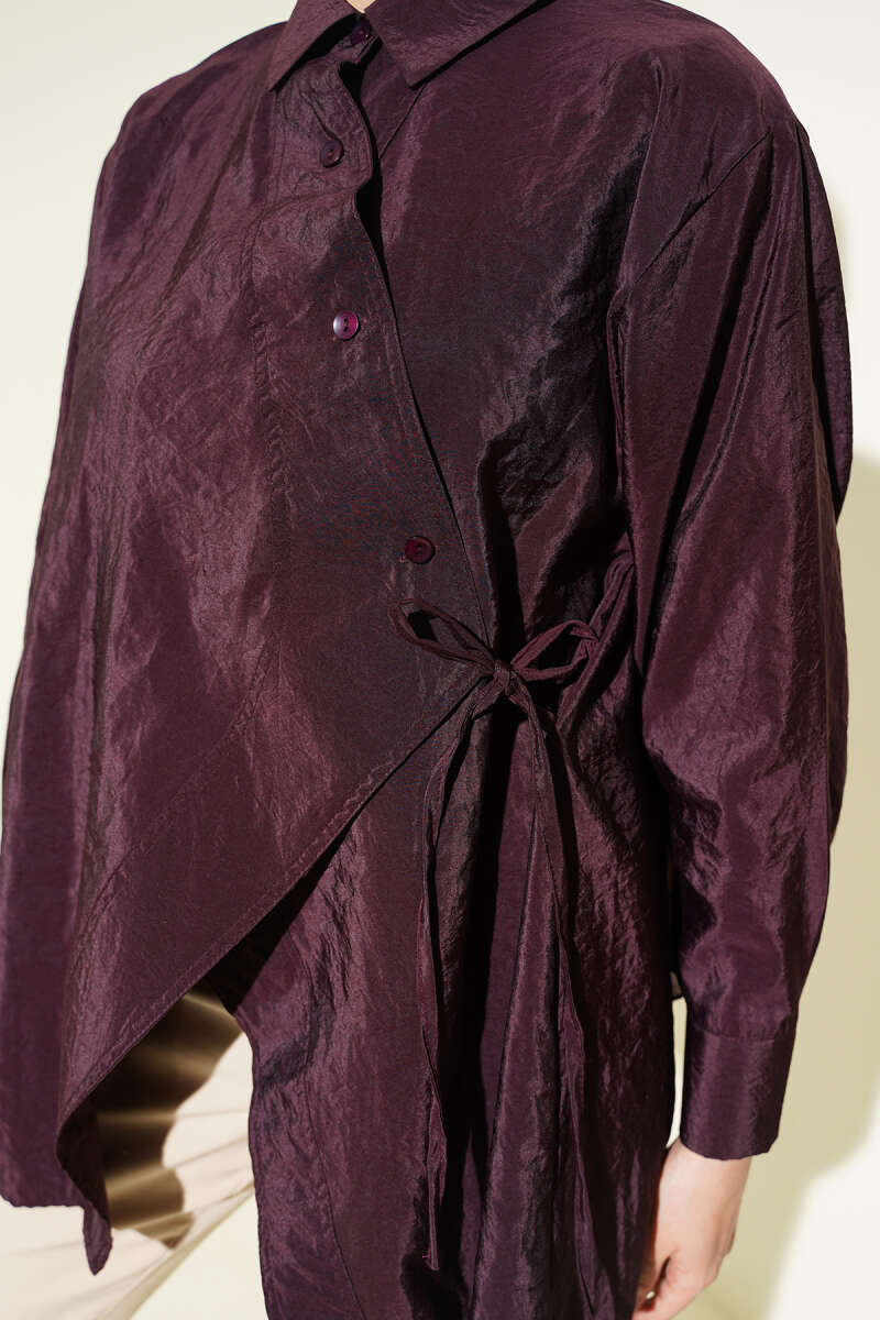 Asimetrik Bağlamalı Gömlek Mürdüm