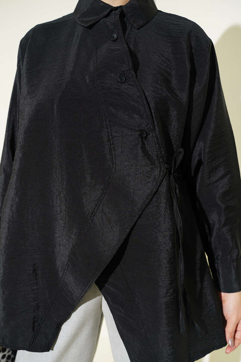 Asimetrik Bağlamalı Gömlek Siyah