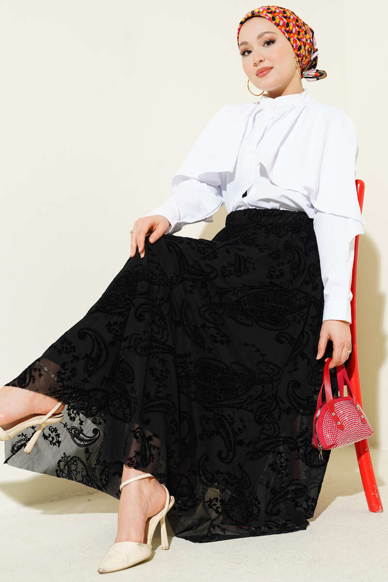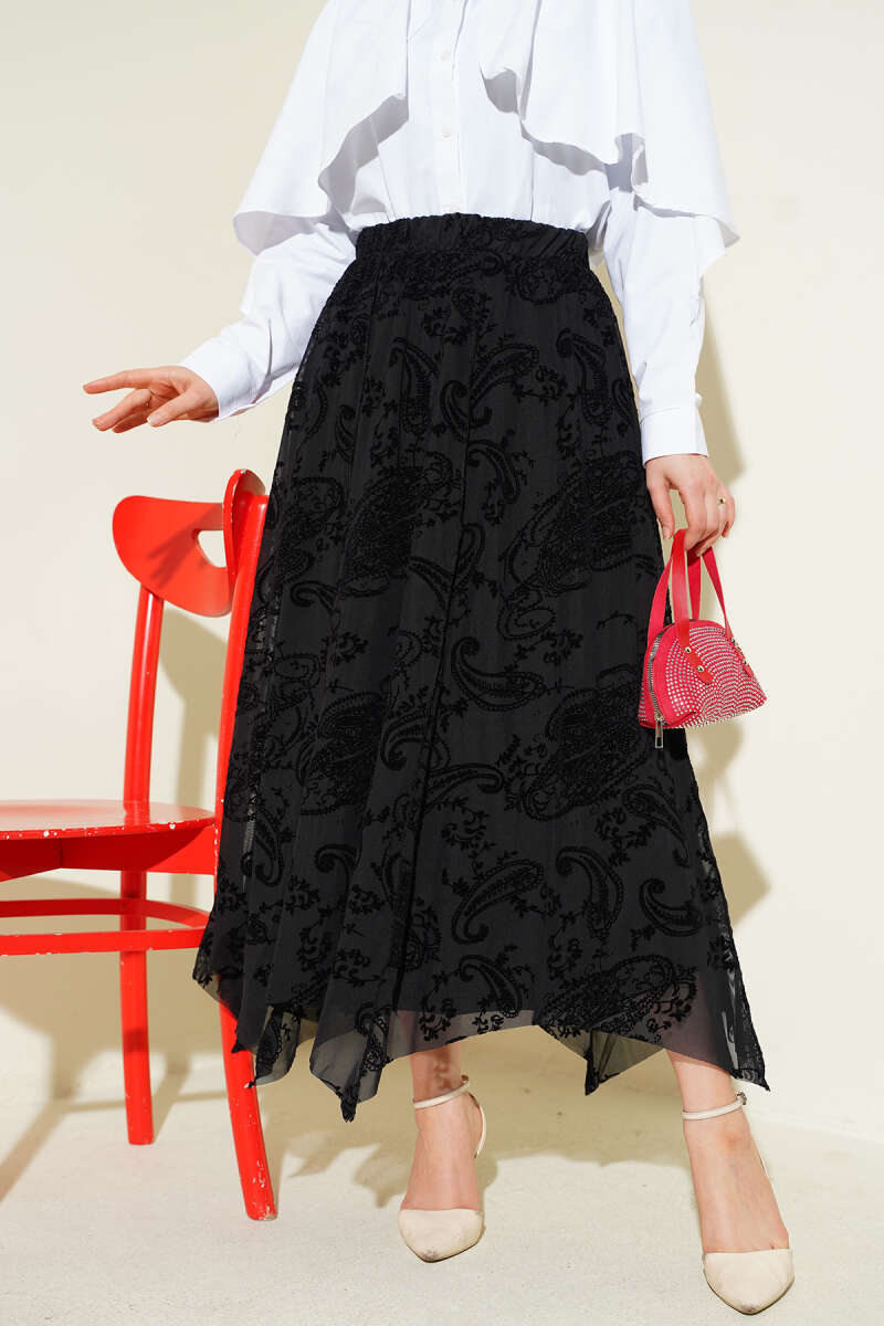 Cepli Balıksırtı Desen Kloş Etek Füme