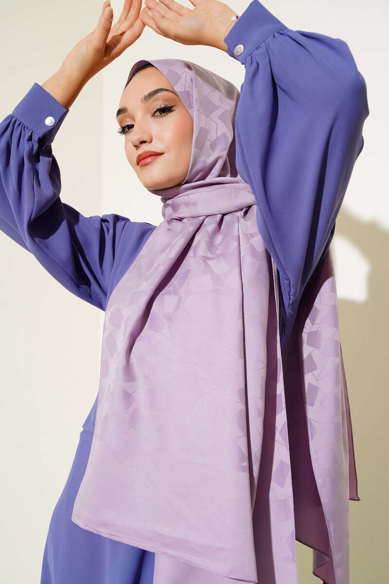 Asimetrik Desen Jakar Şal Lila - 25