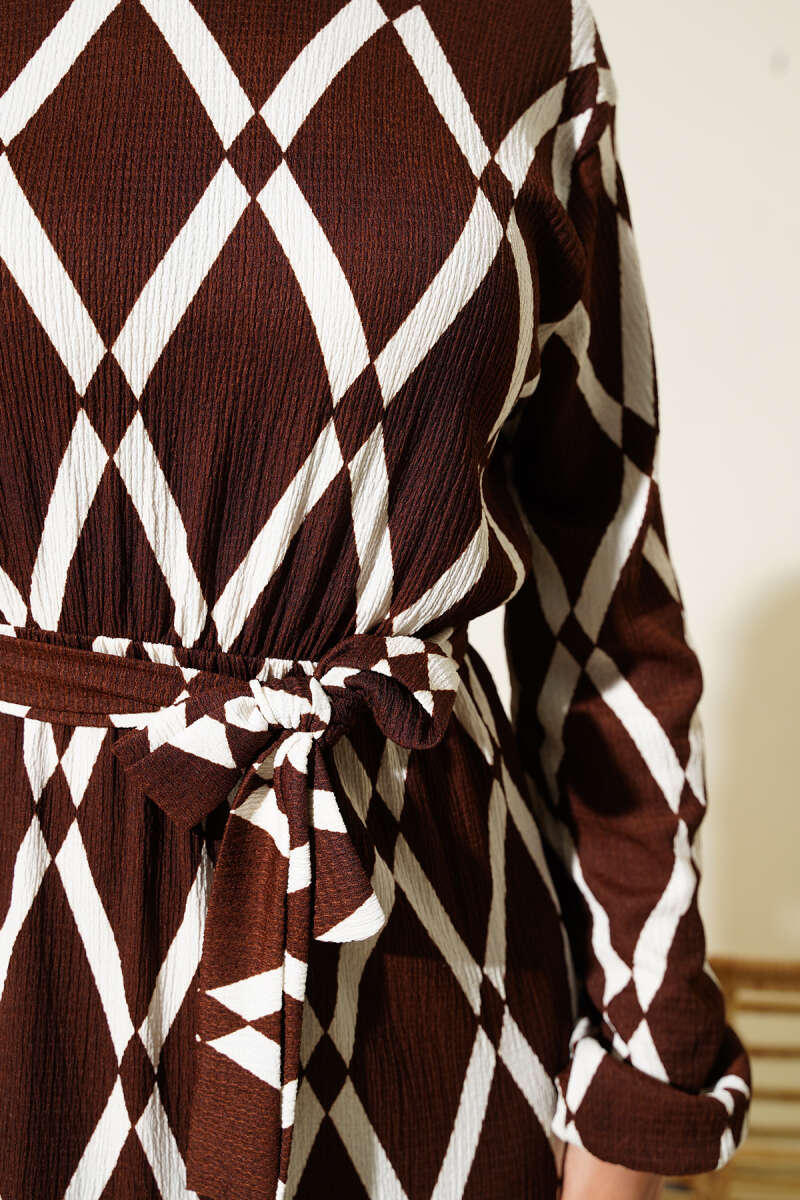 Omuz Pelerin Detaylı Abiye Elbise Kahve