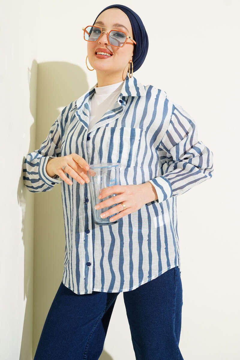 Loyşa İp Kuşaklı Uzun Tunik Mavi