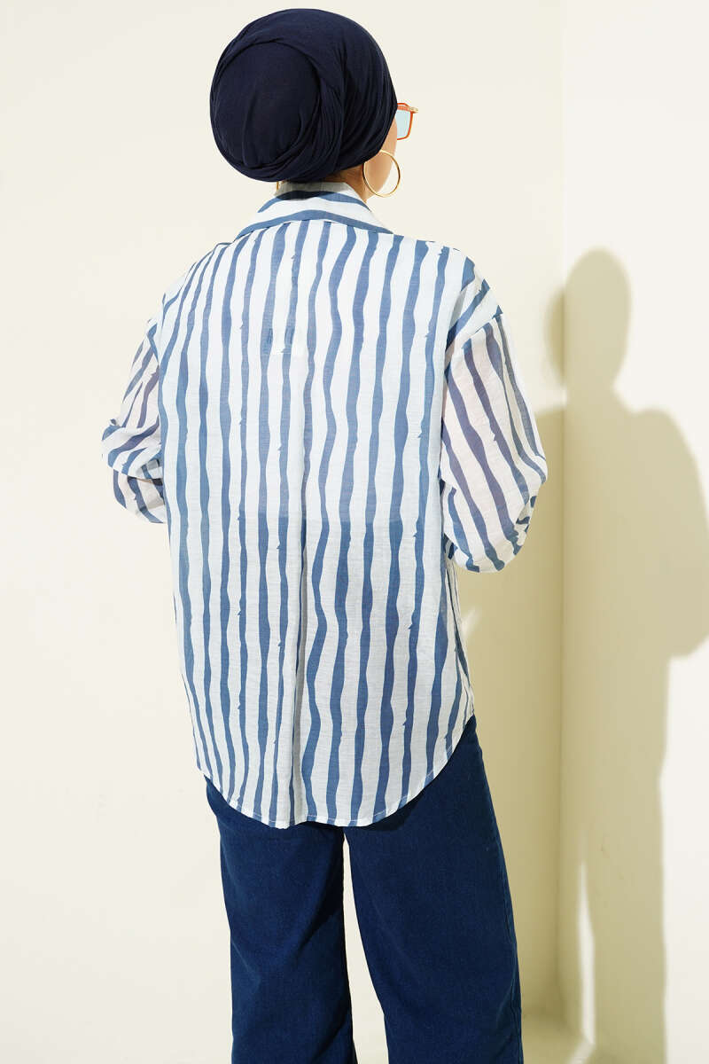 Sırt Dantelli İpli Tensel Gömlek Bebe Mavi