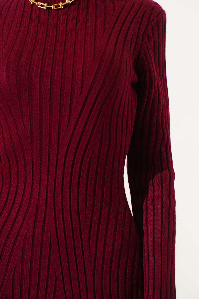 Çizgi Kabartmalı Triko Kazak Yağ Yeşili