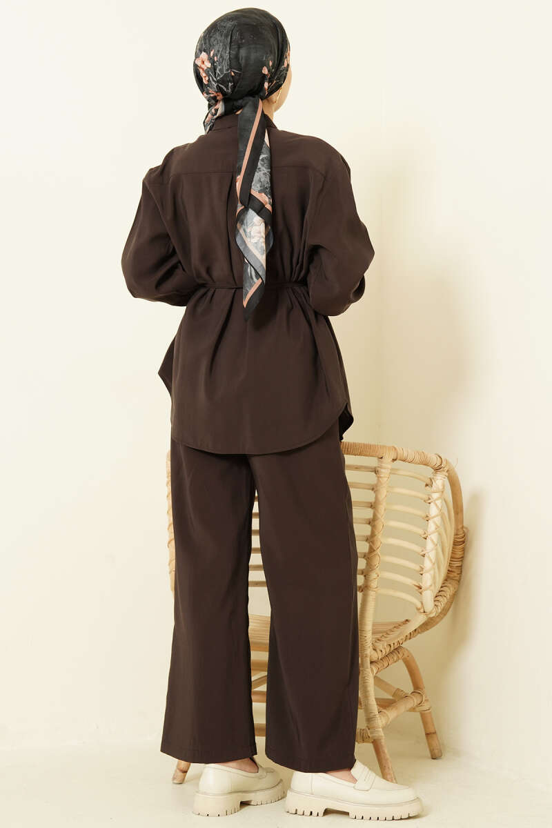 Düğmeli Pens Detaylı Modal Etekli Takım Kahve