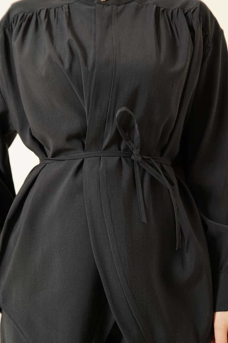 Asimetrik İp Kuşaklı Modal İkili Takım Siyah