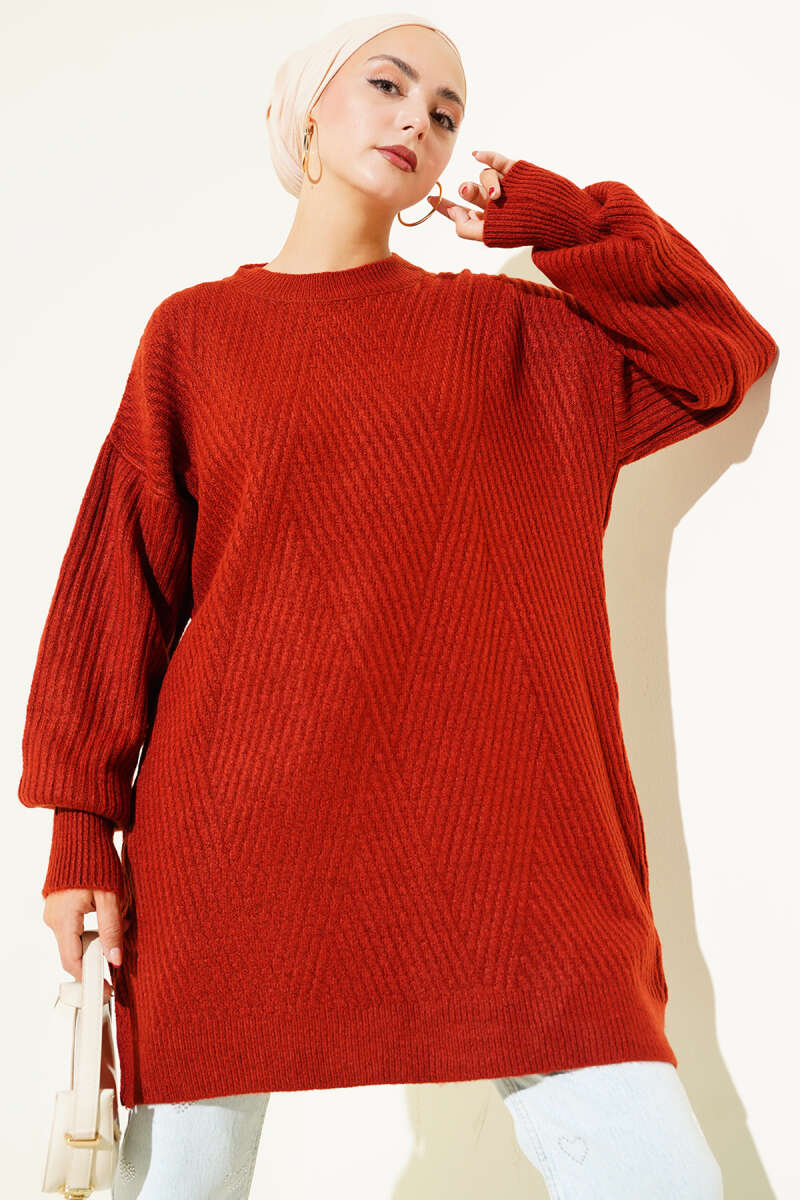 Loyşa Oval Kesim Oversize Tunik Kahve