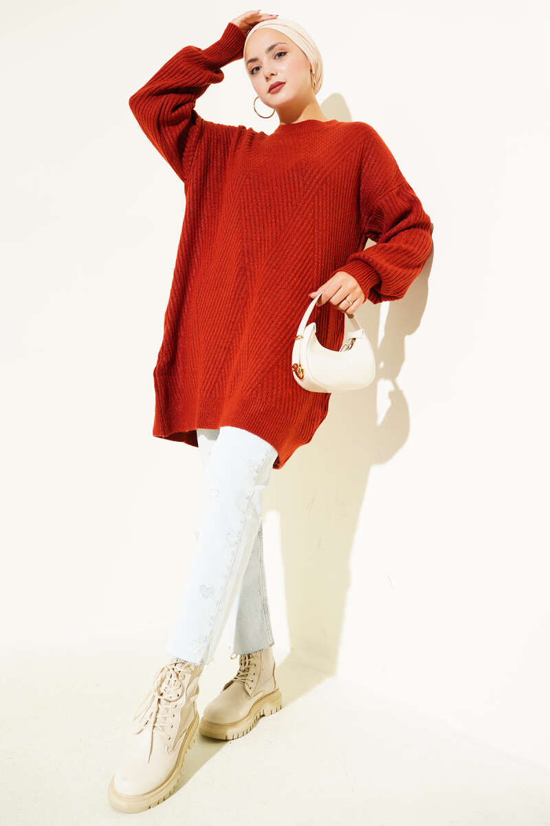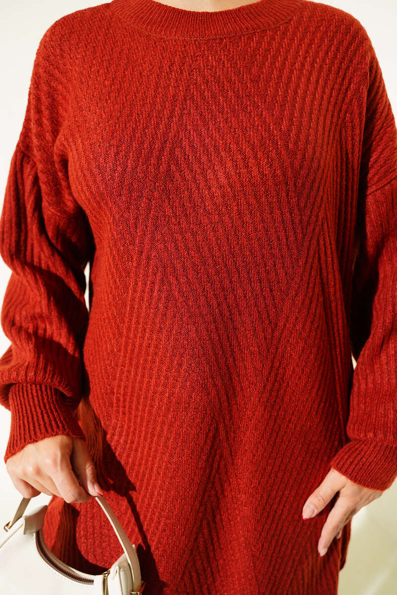 Loyşa Oval Kesim Oversize Tunik Bordo