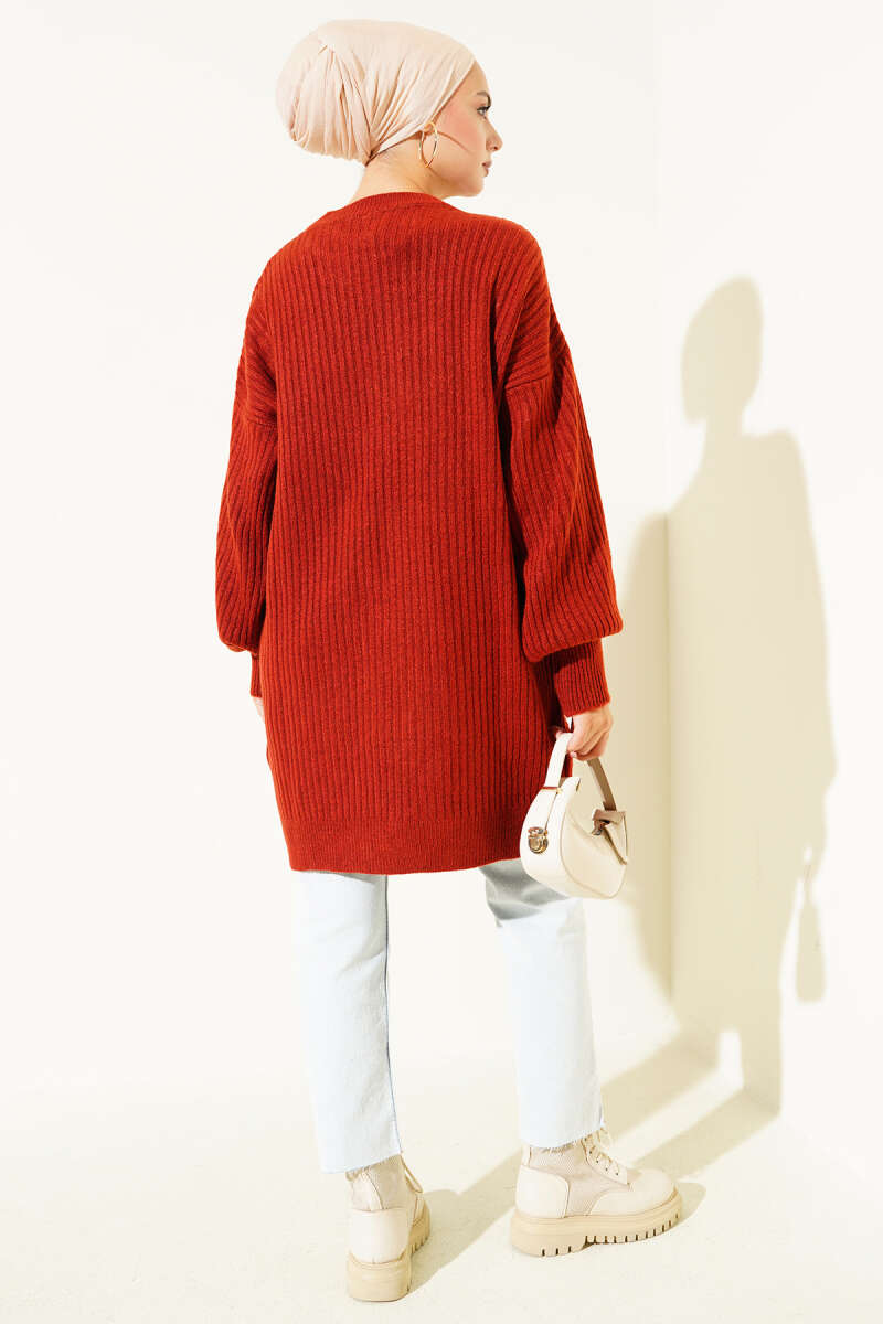 Bilek İpli Fitilli Kaşe Tunik Kahve